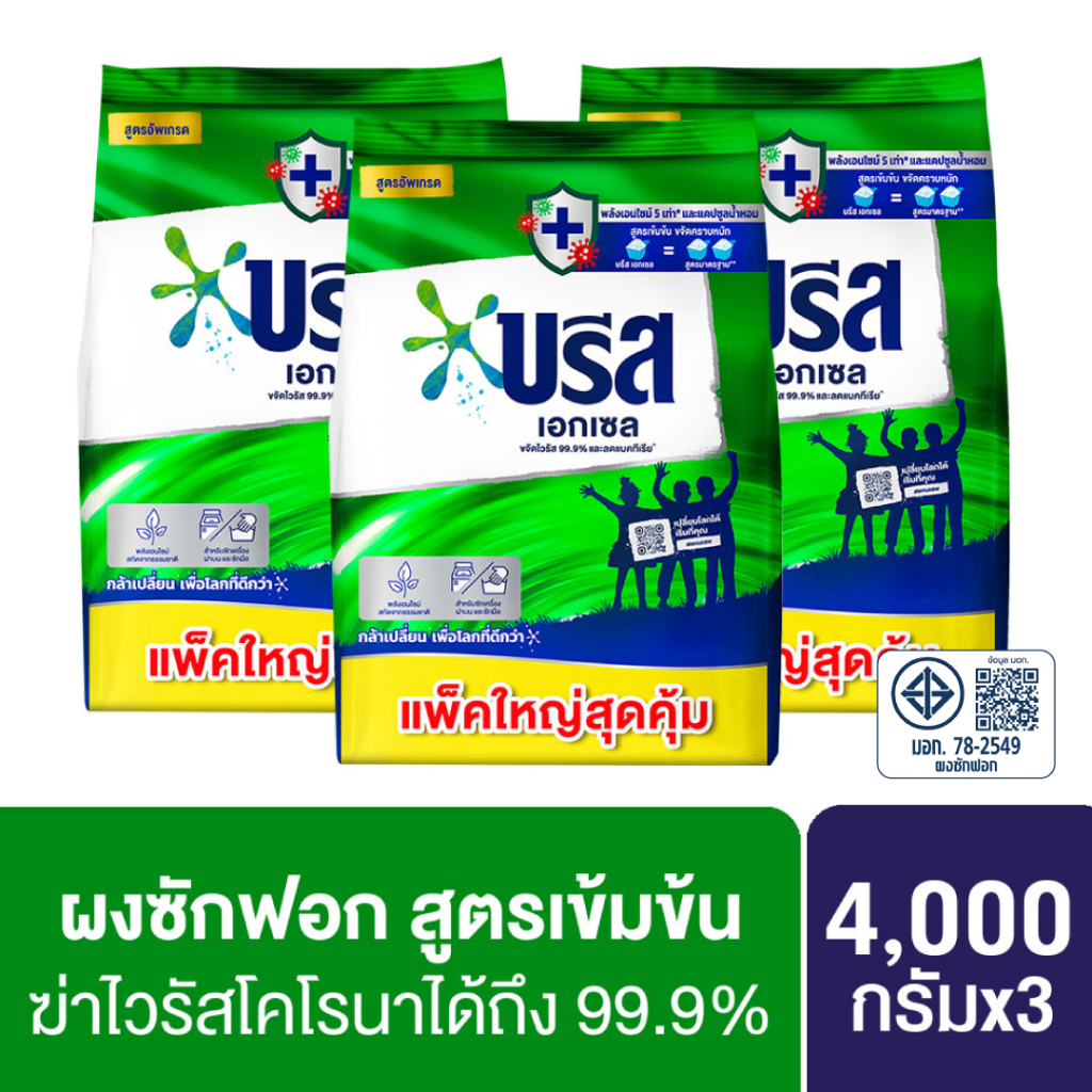 [ยกลัง] บรีส เอกเซล ผงซักฟอก 4000 ก. x3 Breeze Excel Washing Powder 4000 g. x3