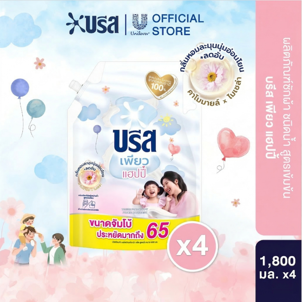 [ยกลัง] บรีส เอกเซล ลิควิด น้ำยาซักผ้า สูตรเข้มข้น 1800-2000 มล.x4 Breeze Excel Signature Liquid Breeze 1800-2000 ml.x4