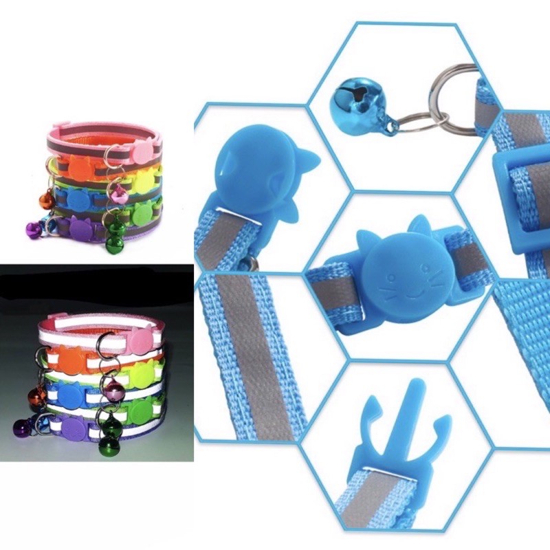 ปลอกคอแมว ปลอกคอนิรภัย มีแถบสะท้อนแสง มี18สี Kendall Cat Shop