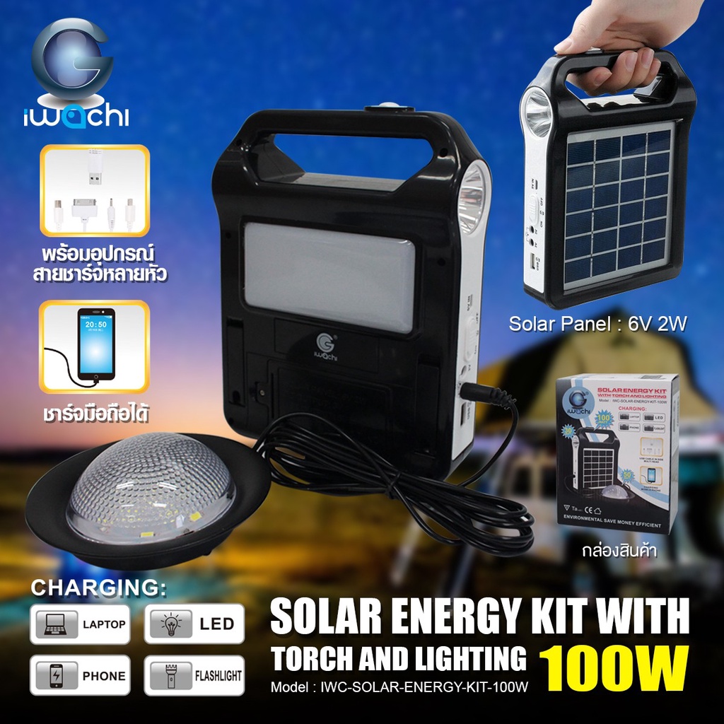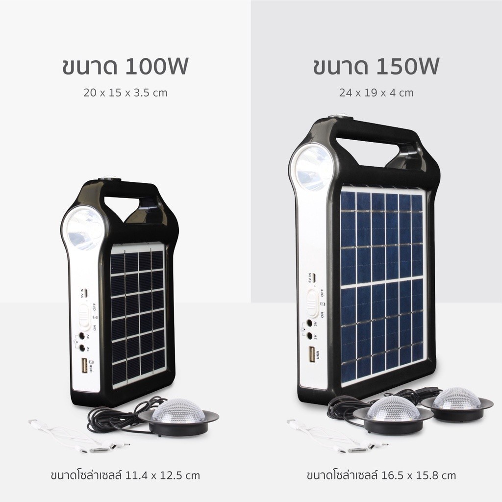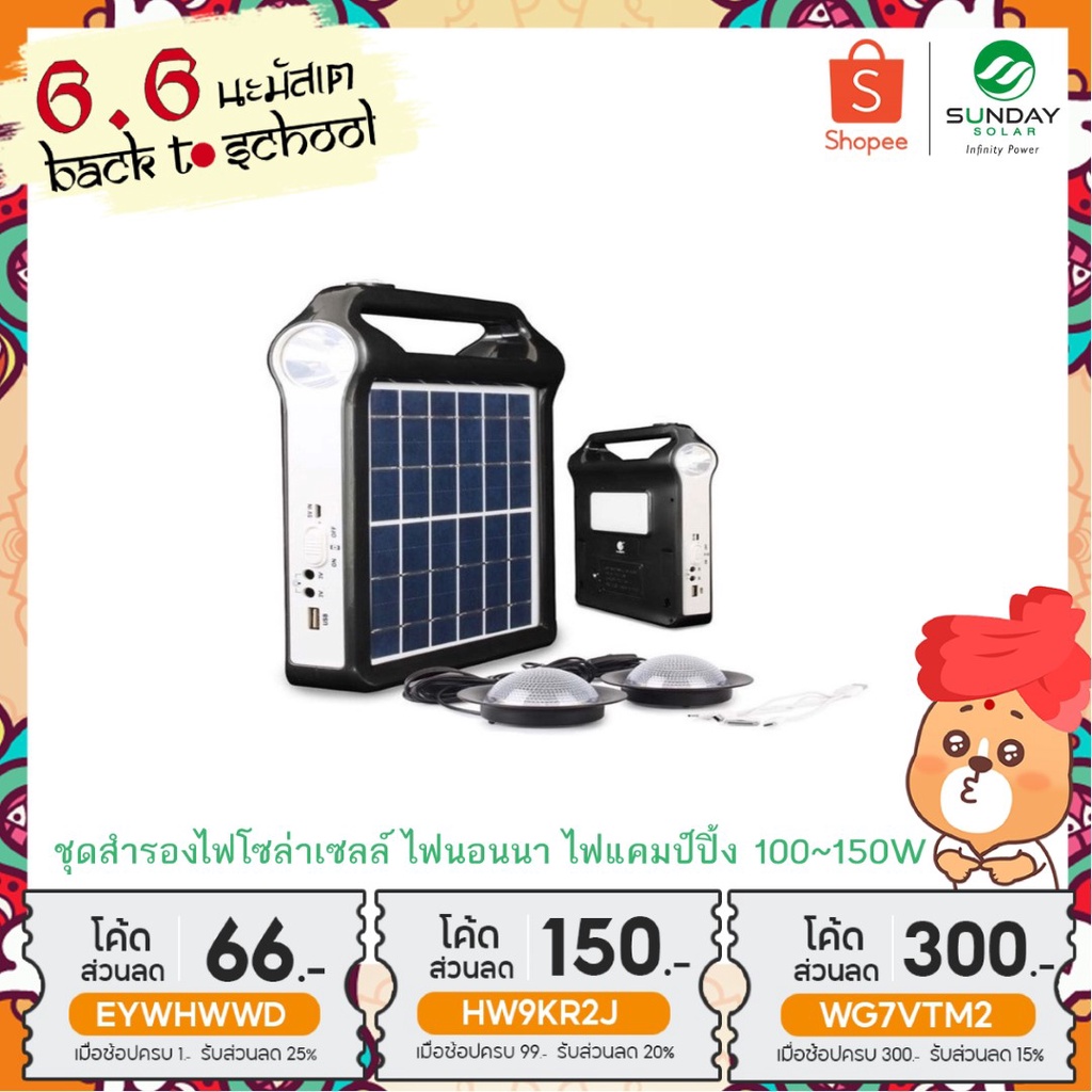[ประกัน1ปี] SUNDAY ไฟแคม์ปิ้งโซล่าเซลล์ 100/150W ไฟฉาย ชุดสำรองไฟโซล่าเซลล์ ชาร์จมือถือได้ หลอด Led ชุดนอนนาโซล่าเซลล์