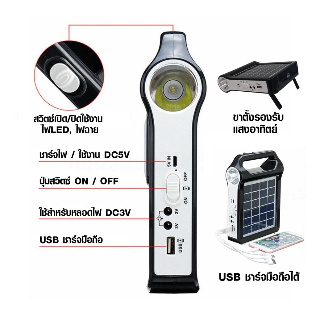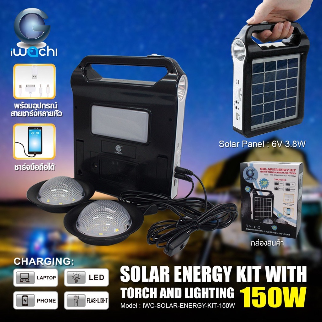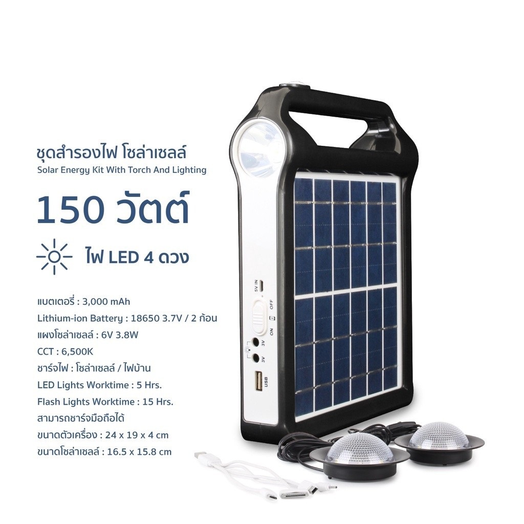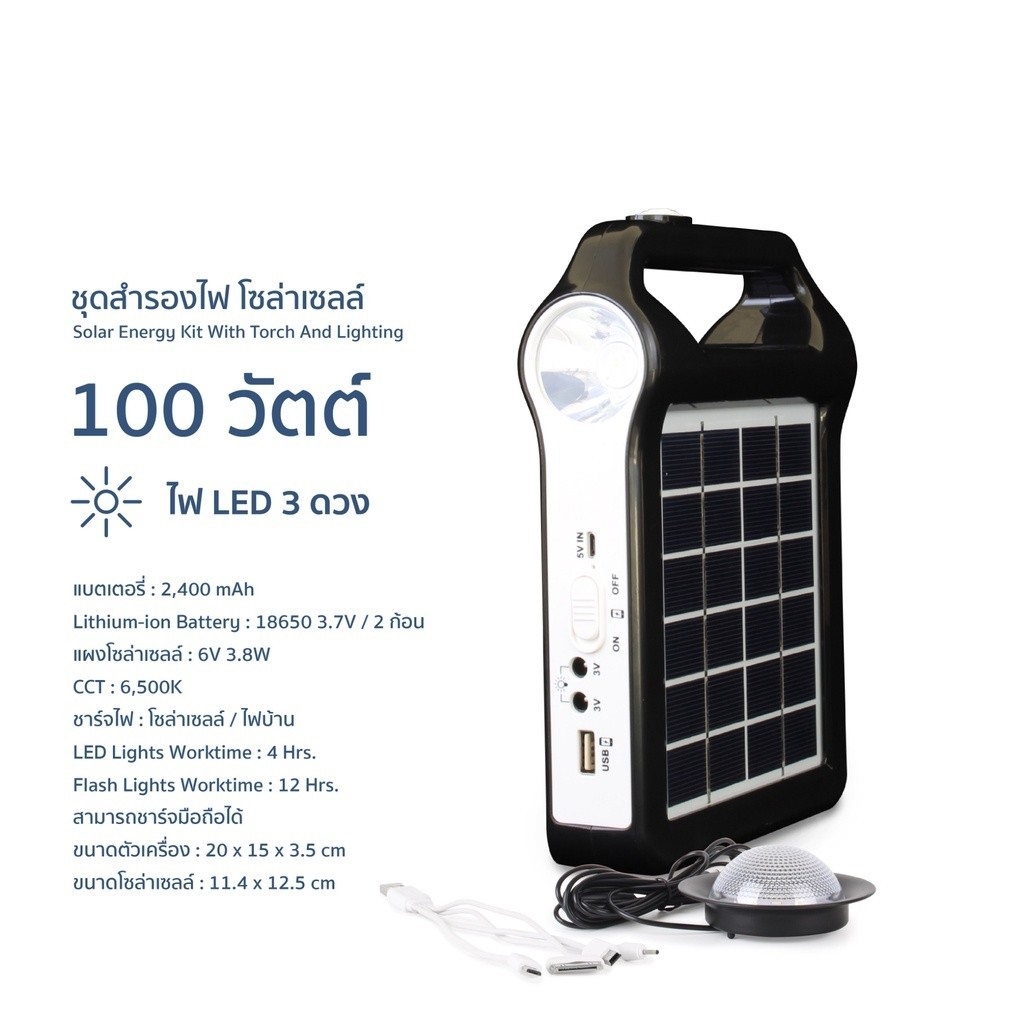 [ประกัน1ปี] SUNDAY ไฟแคม์ปิ้งโซล่าเซลล์ 100/150W ไฟฉาย ชุดสำรองไฟโซล่าเซลล์ ชาร์จมือถือได้ หลอด Led ชุดนอนนาโซล่าเซลล์