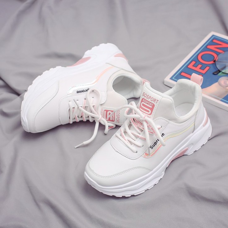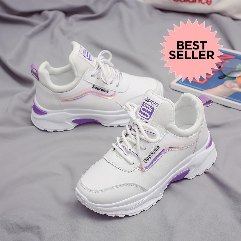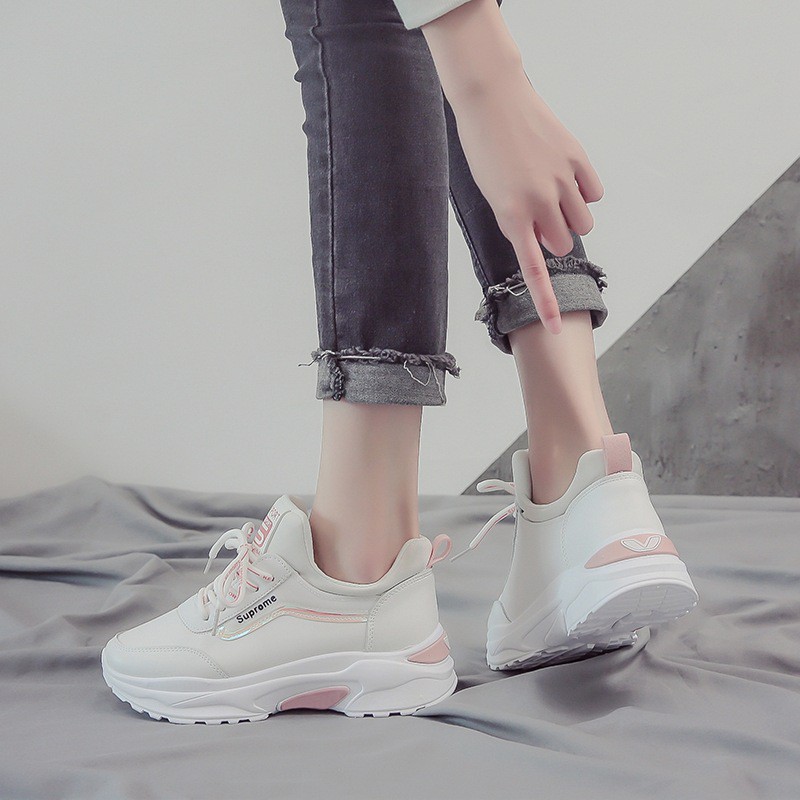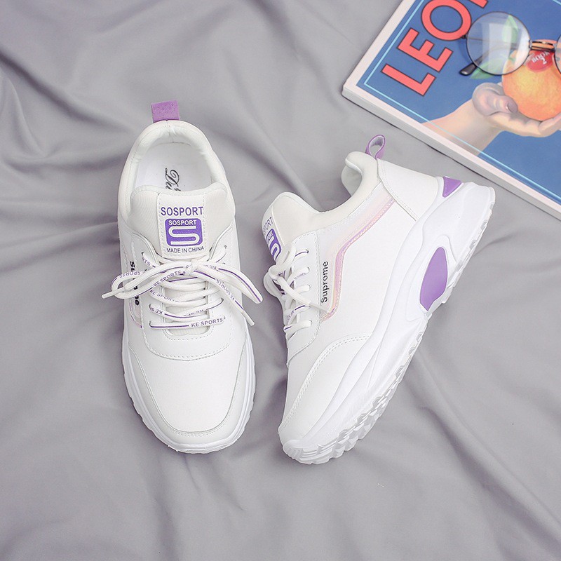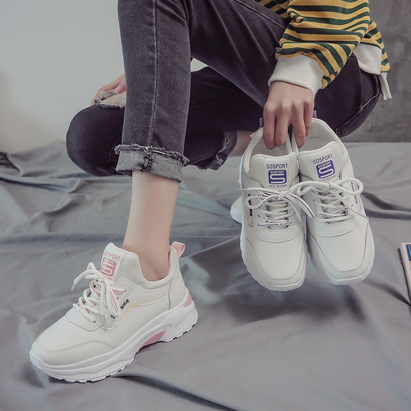 sneaker.world 💜พร้อมส่งม่วง/ชมพู💗 รองเท้าผ้าใบ ผู้หญิง เสริมส้น 4.5 ซม. (ไซส์เล็กควรสั่งเผื่อไซส์)