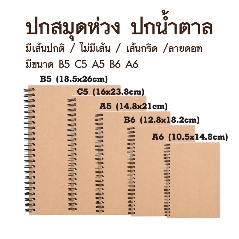 สมุดโน๊ต ริมลวดสันห่วง ปกน้ำตาลมีเส้น,ตาราง ,ไม่มีเส้น,จุด