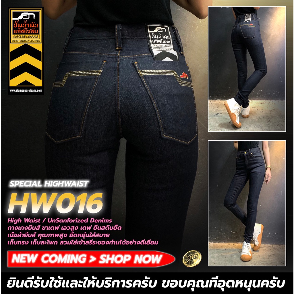 HW016 019 011 กางเกงยีนส์ผู้หญิง เอวสูงสกินนี่ ผ้าดิบ+ยืดสีมิดไนท์บูล (Gasoline & Garage)ปั๊มน้ำมันแก๊สโซลีน (SUP TWO)