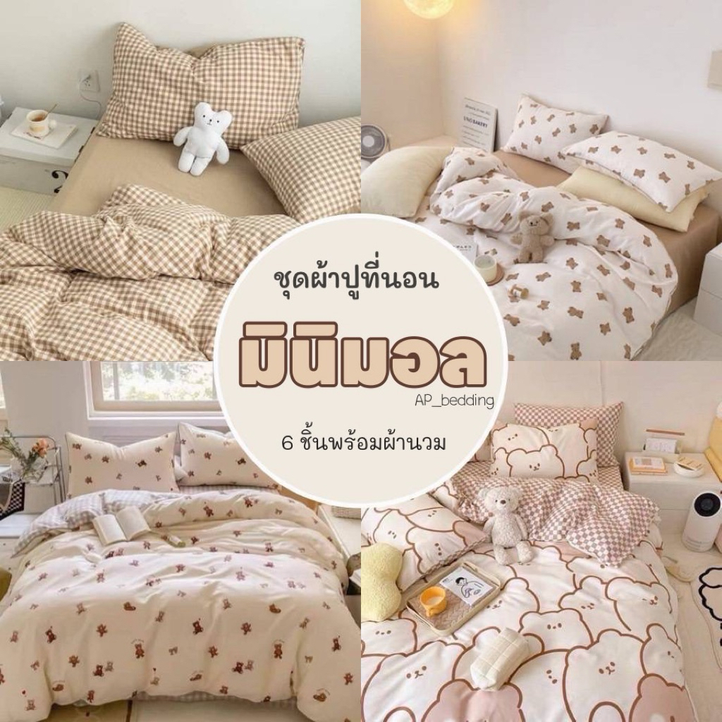ผ้าปูที่นอนพร้อมผ้านวม ครบเซ็ต 6 ชิ้น มีขนาด 3.5/5/ 6 ฟุต