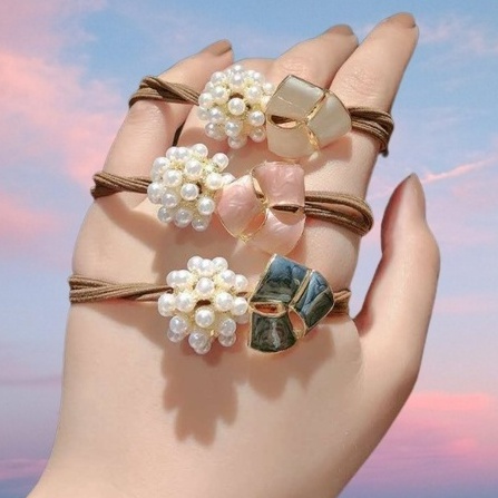 (กรอกโค้ด LVF7A ลด15%ยางรัดผมคละสียกโหลราคาถูก) ยางรัดผมมุก ยางรัดดผมเกาหลี ยางมัดผมม