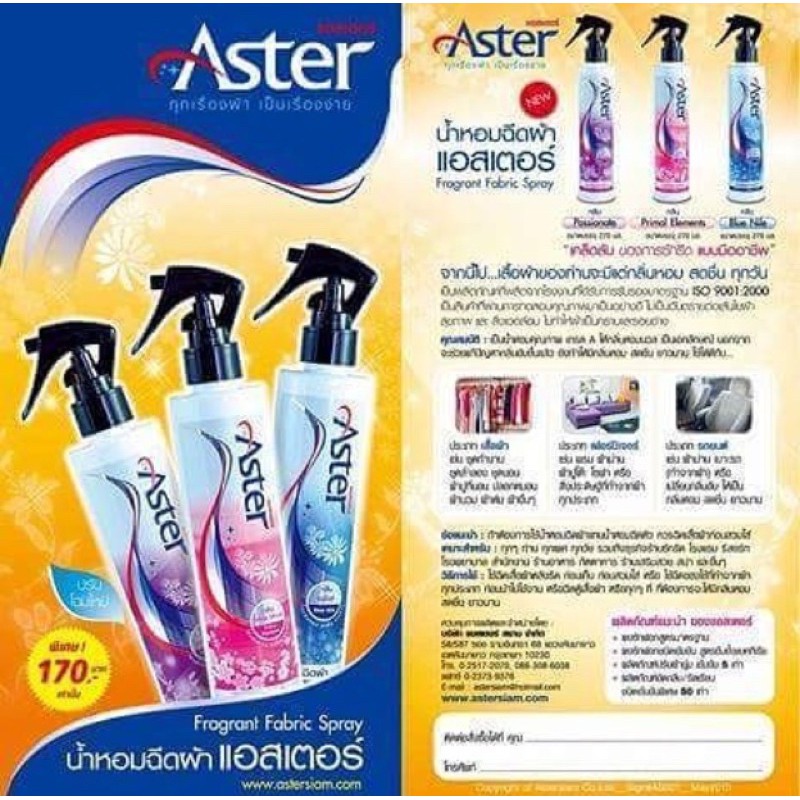 น้ำหอมฉีดผ้าแอสเตอร์ ขนาดทดลอง (10 มล./ขวด) ขนาดพกพา Aster น้ำยาฉีดผ้าหอม