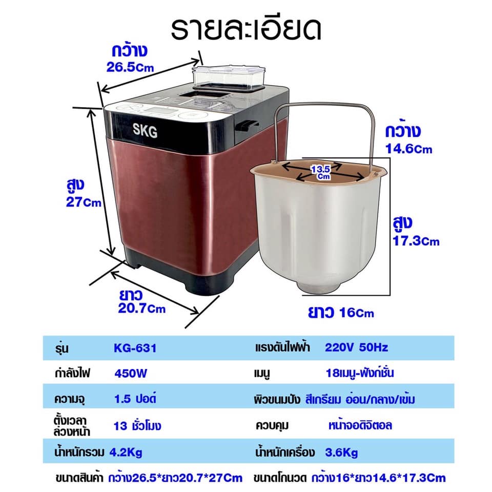 SKG เครื่องทำขนมปัง 1.5ปอนด์ นวดแป้ง - อบ ในตัว (อัตโนมัติ) รุ่น KG-631 สีทองแดง