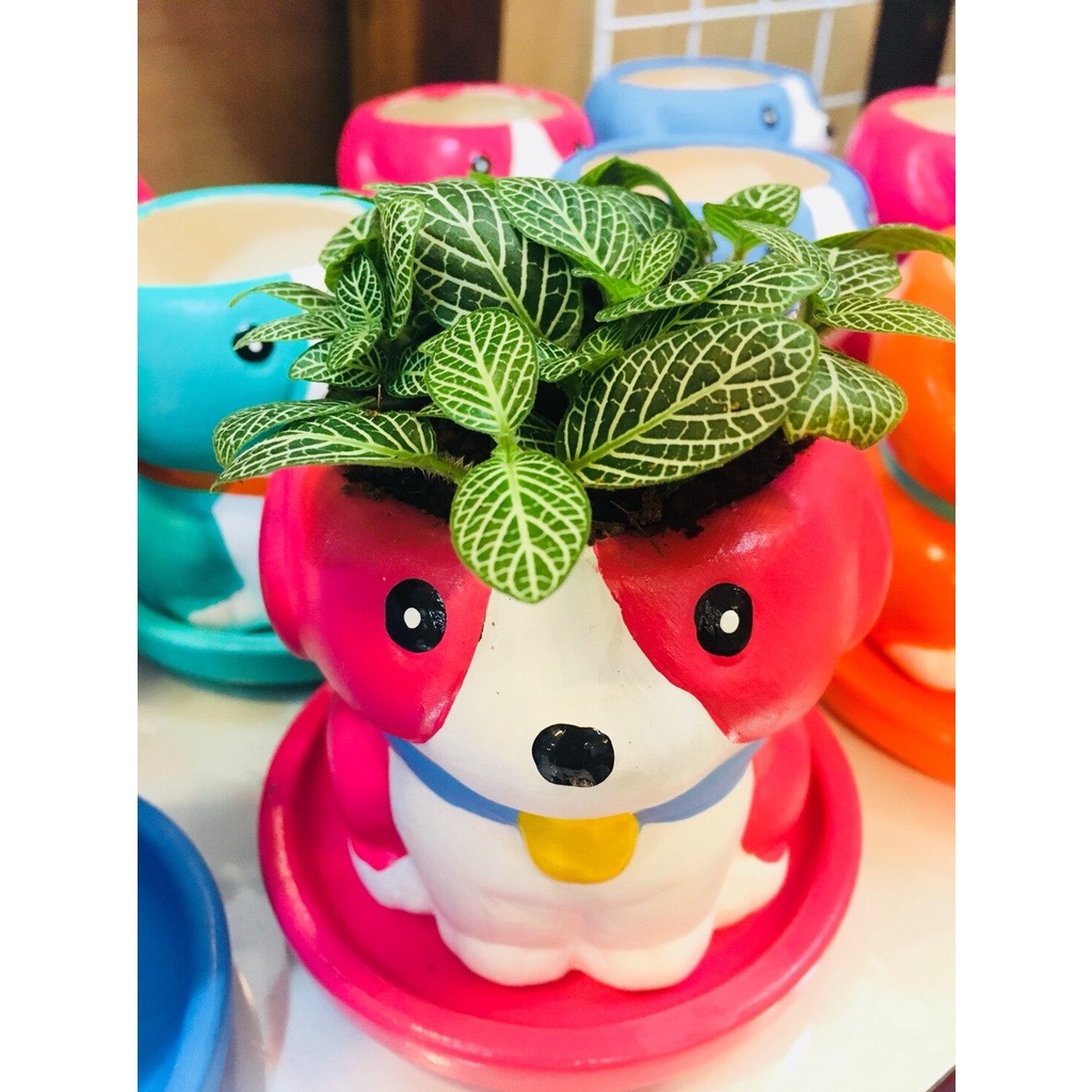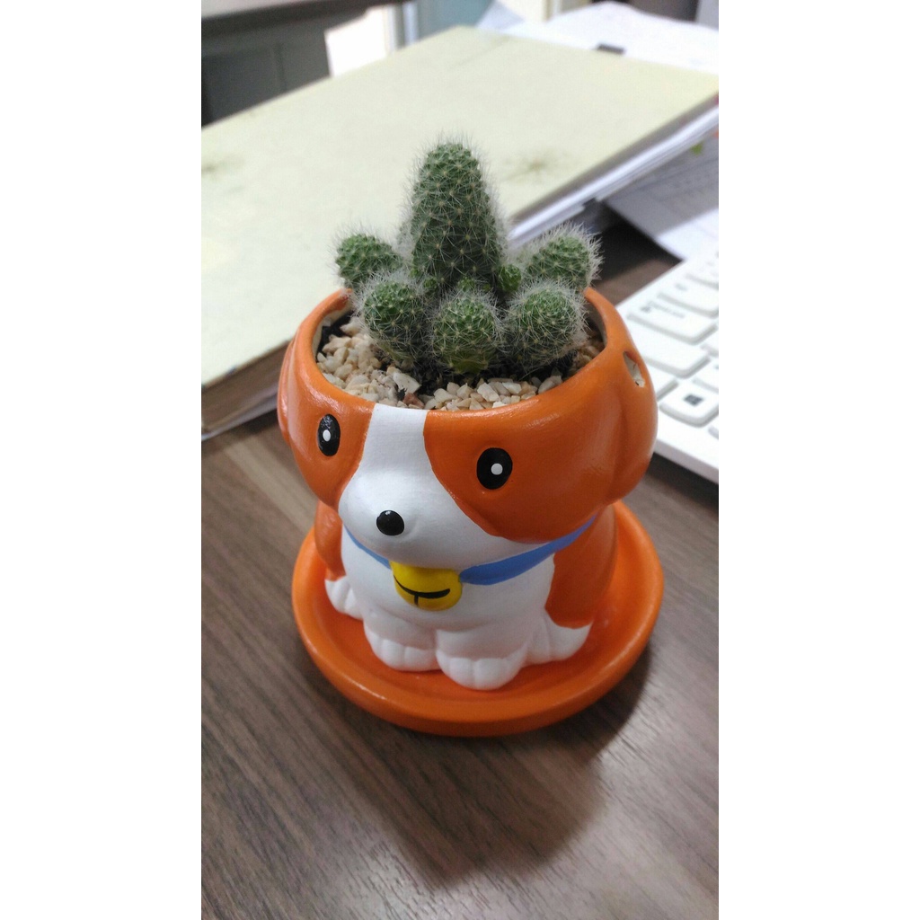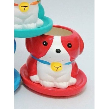 กระถางแคคตัส มีจานรอง สุนัข เลือกสีได้ (จำนวน 1 ชิ้น) ขายเฉพาะตุ๊กตาเซรามิค / ไม่มีต้นไม้