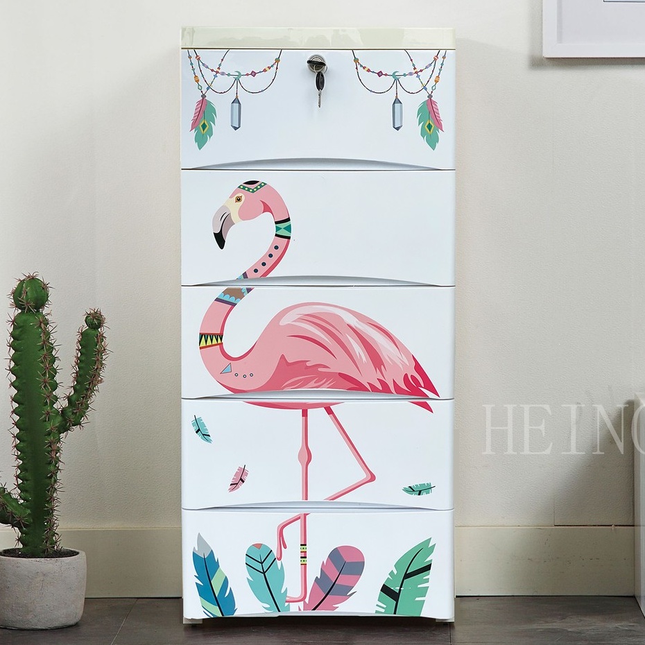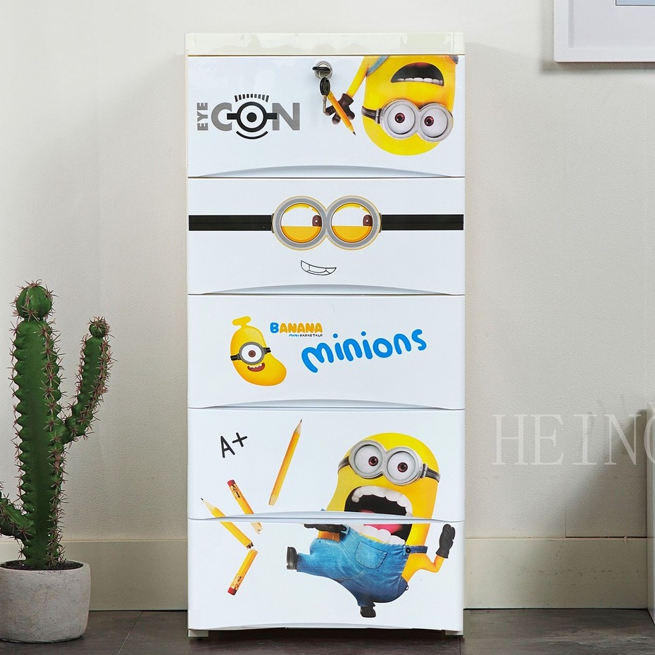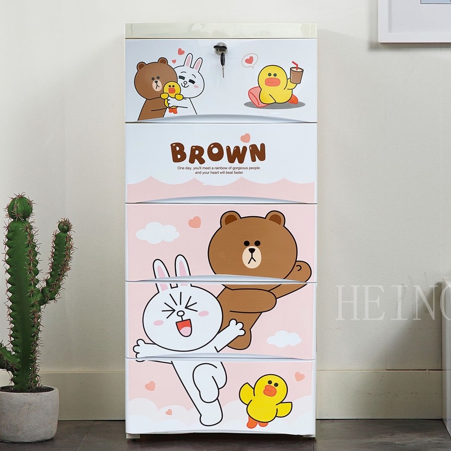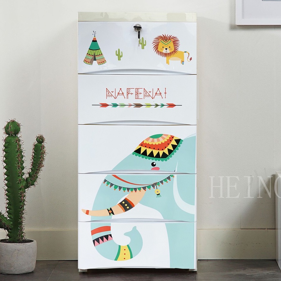 HEINOเพิ่มหนากว้าง38cmลิ้นชักเก็บของลายการ์ตูนตู้เสื้อผ้าเก็บของ แบบ5ลาย ล็อคได้ ไม่มีกลิ่น ปลอดสารพิษ5/4/3ชั้น
