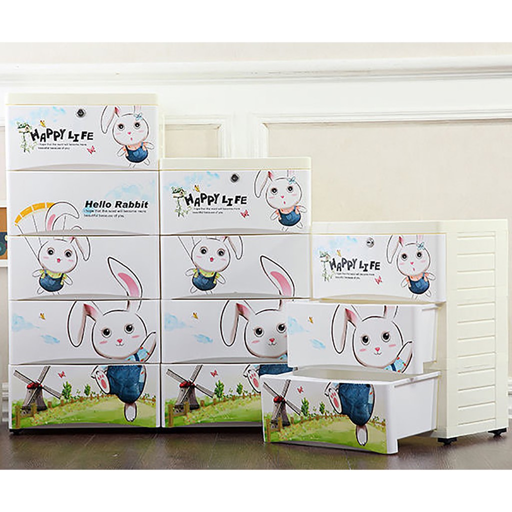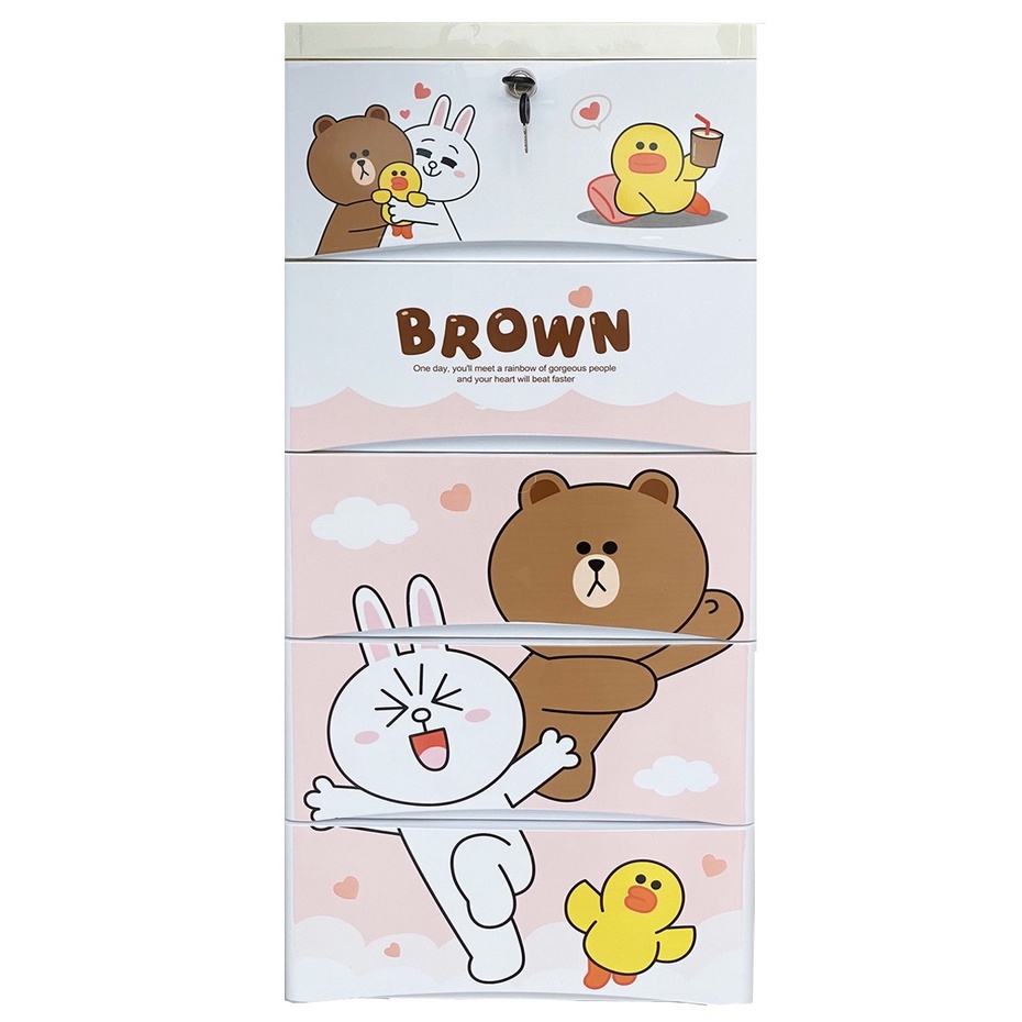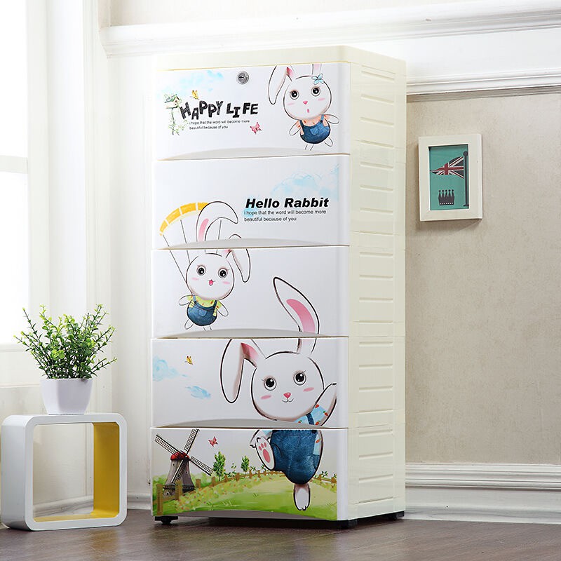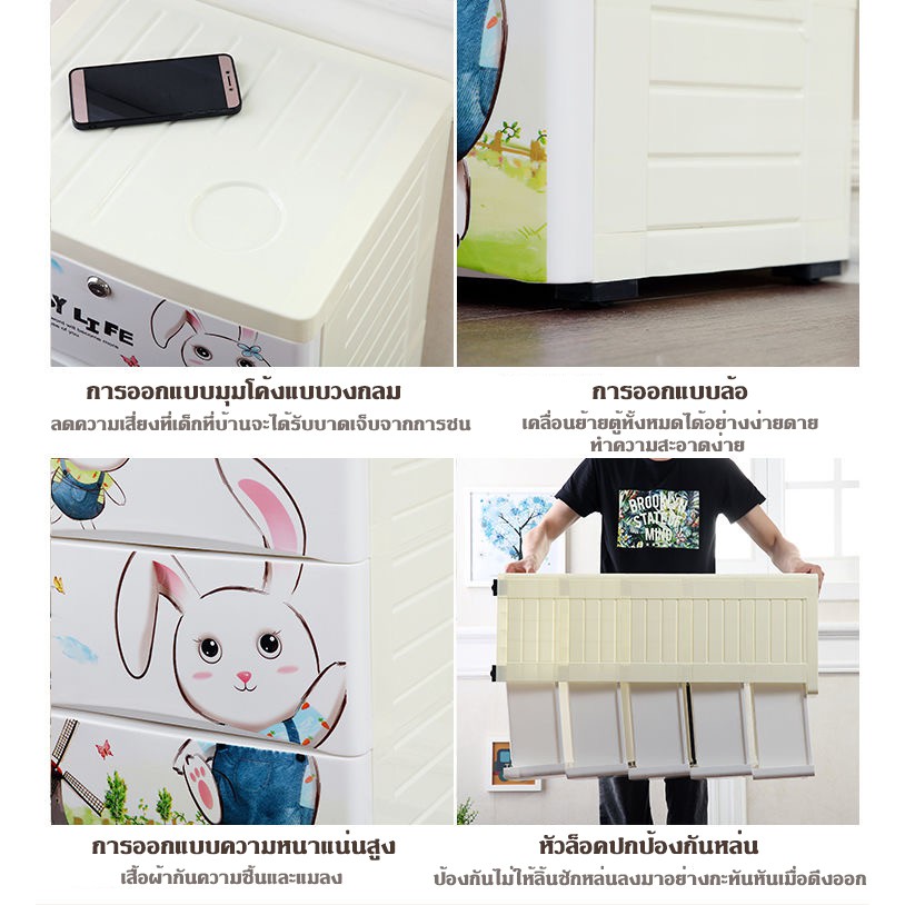 HEINOเพิ่มหนากว้าง38cmลิ้นชักเก็บของลายการ์ตูนตู้เสื้อผ้าเก็บของ แบบ5ลาย ล็อคได้ ไม่มีกลิ่น ปลอดสารพิษ5/4/3ชั้น