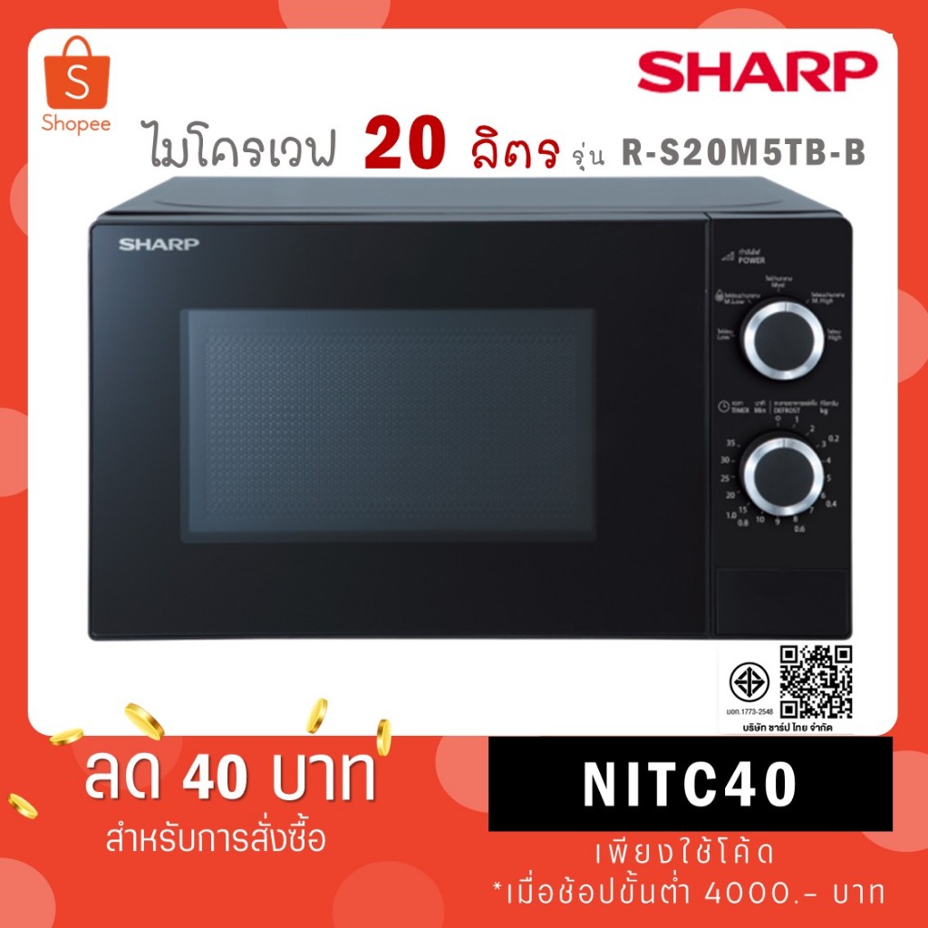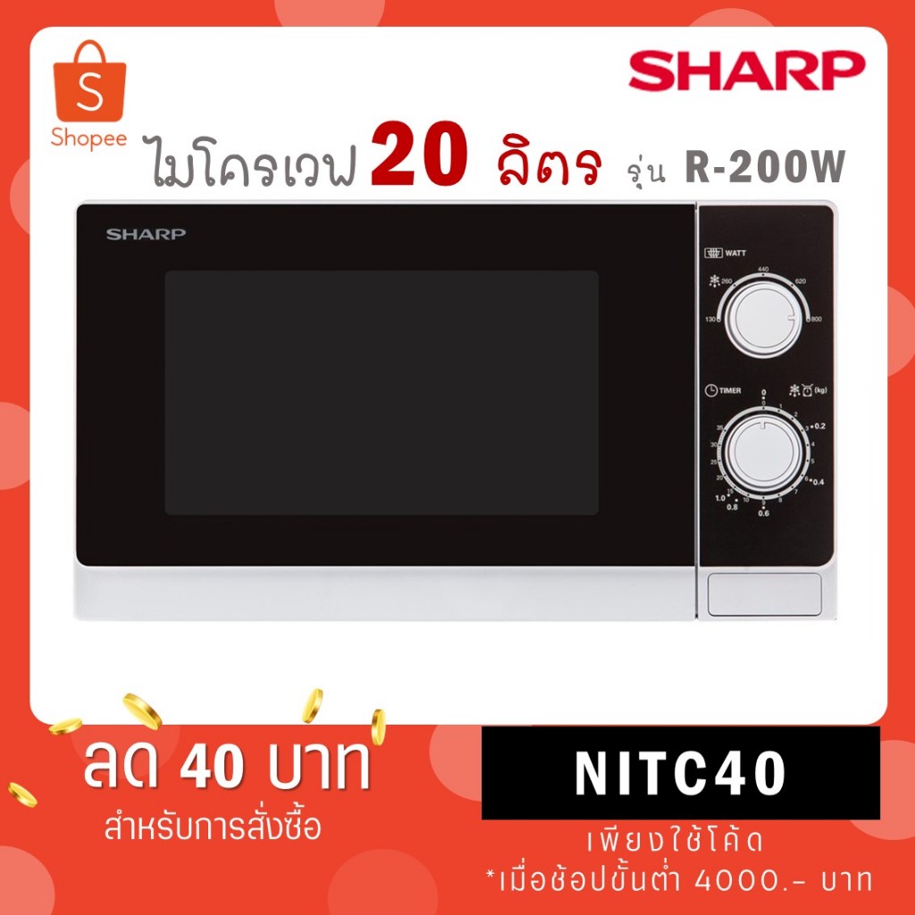 SHARP ไมโครเวฟ 20 ลิตร รุ่น R-200W สีขาว / รุ่นใหม่ R-S20M5TB-B สีดำ