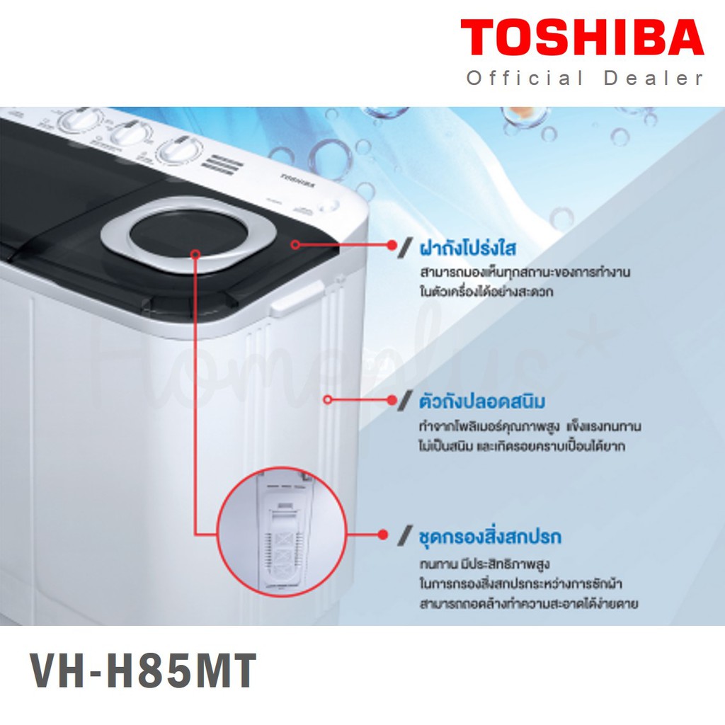 Toshiba เครื่องซักผ้าฝาบน 2 ถัง ขนาด 7.5kg รุ่น VH-H85MT VH H85MT VH-H85