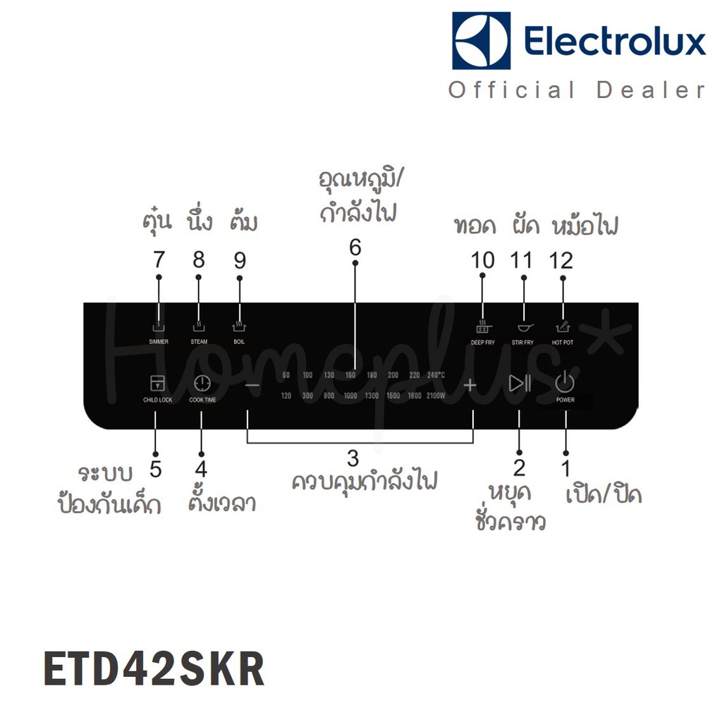 Electrolux เตาแม่เหล็กไฟฟ้า ETD42SKR พร้อม กระทะ หม้อและตะแกรงสำหรับนึ่ง กำลัง 2100 W