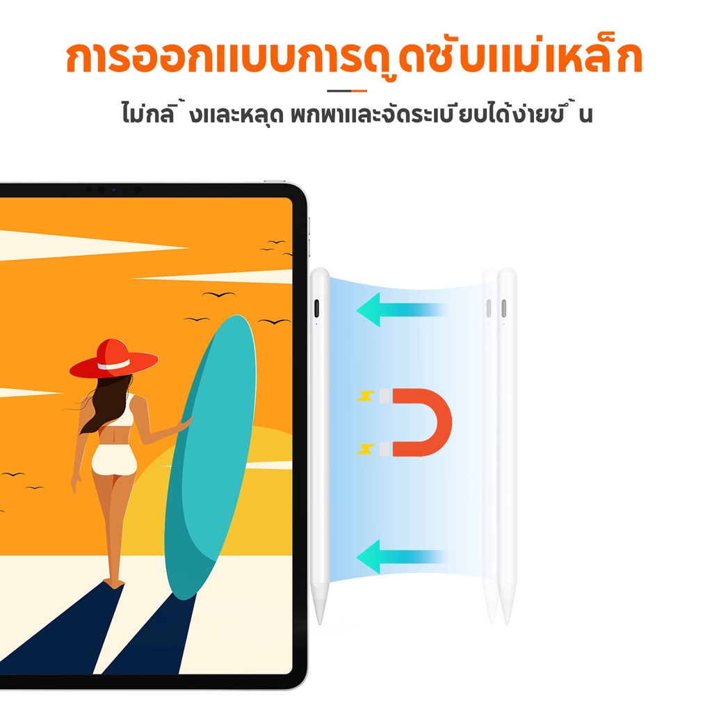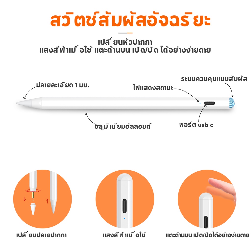 [ใหม่ล่าสุด pencil] ปากกาสไตลัส วางมือบนจอ+แรเงาได้ ปากกาทัชสกรีน Stylus Pen สำหรับ Gen10,9,8,7,6 Air5 Air4 Air3 Mini6,5
