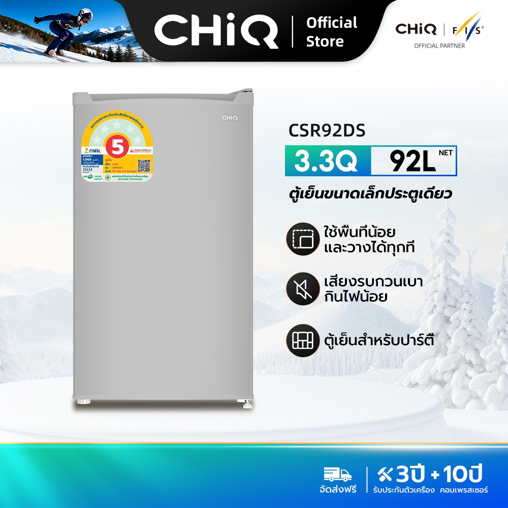CHiQ ตู้เย็นขนาดเล็กประตูเดียว ความจุ 92 ลิตร สีเทาขาว ประหยัดพลังงานและเสียงเงียบ รุ่น CSR92DS จัดส่งฟรีและรับประกัน 3