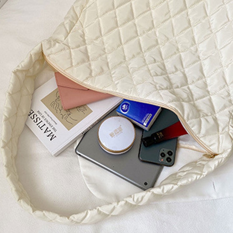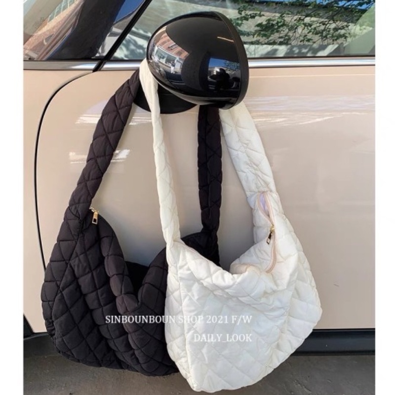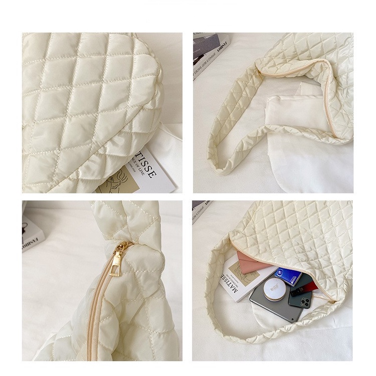 AMILA เกาหลีใต้ Raucohouse กระเป๋าสะพายข้างเพชร กระเป๋าผ้าอัดพลีท ซิป BLACKPINK Jennie สไตล์เดียวกัน
