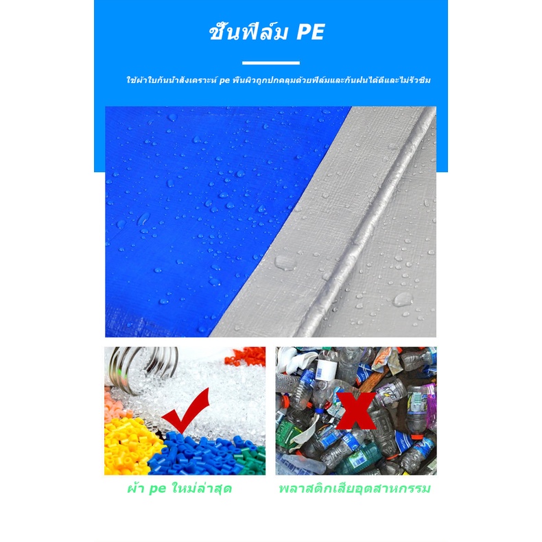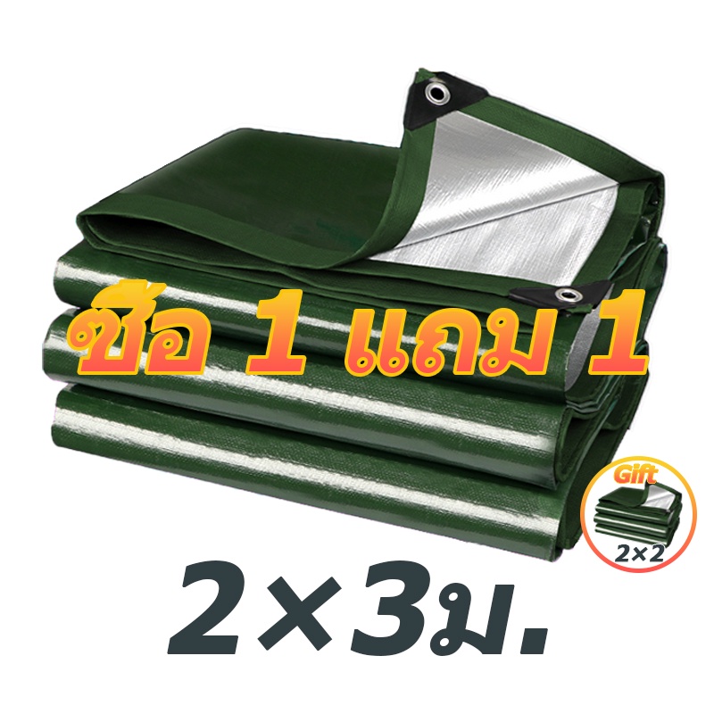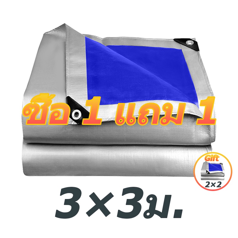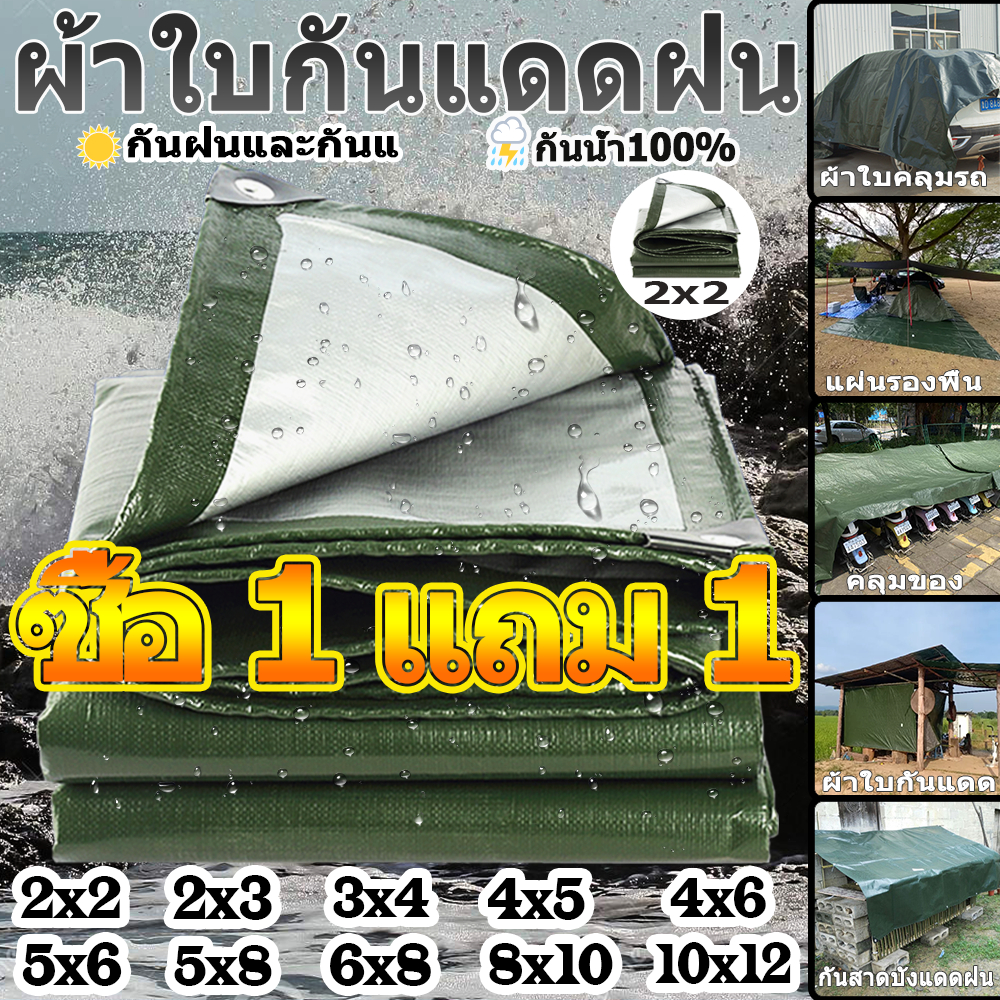 🌟ซื้อ 1 แถม 1🌟 ผ้าใบกันแดดกันฝน 2x2 2x3 2x4 3x3 3x4 4x6 เมตร(มีตาไก่) กันน้ำ100% ฝาครอบรถ เต็นท์