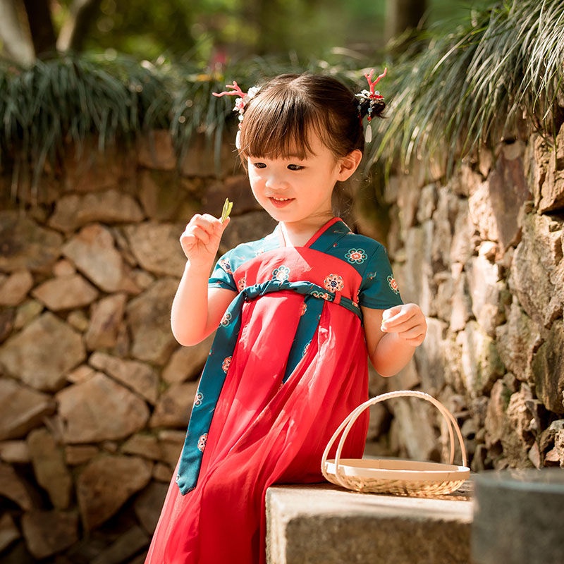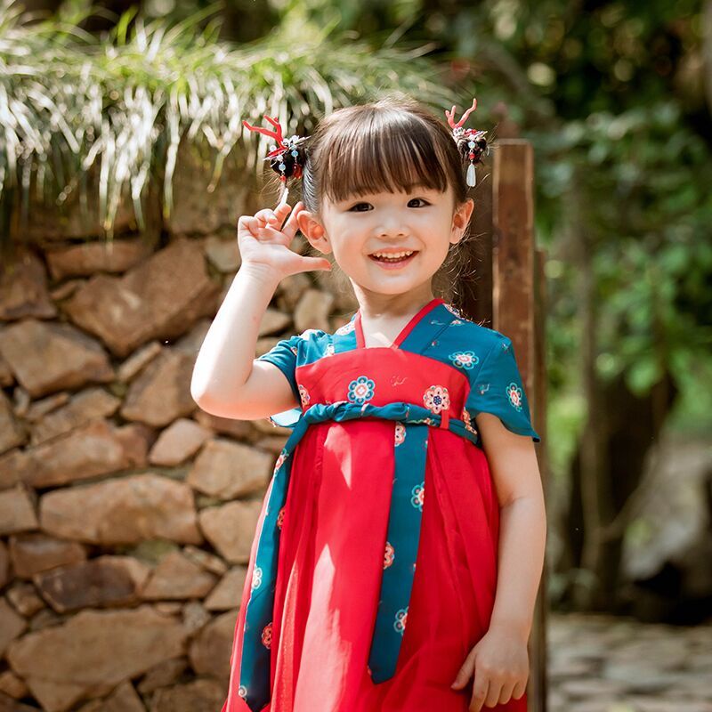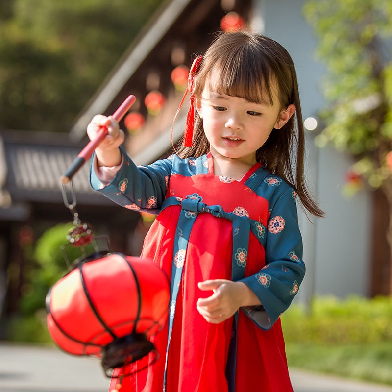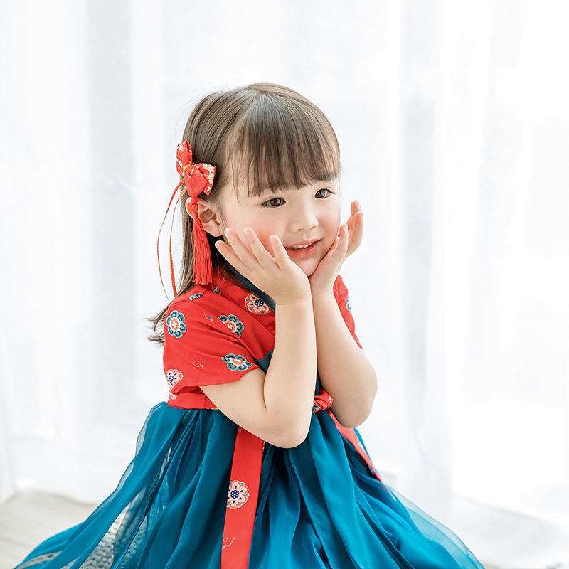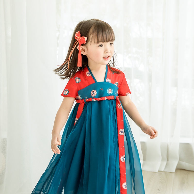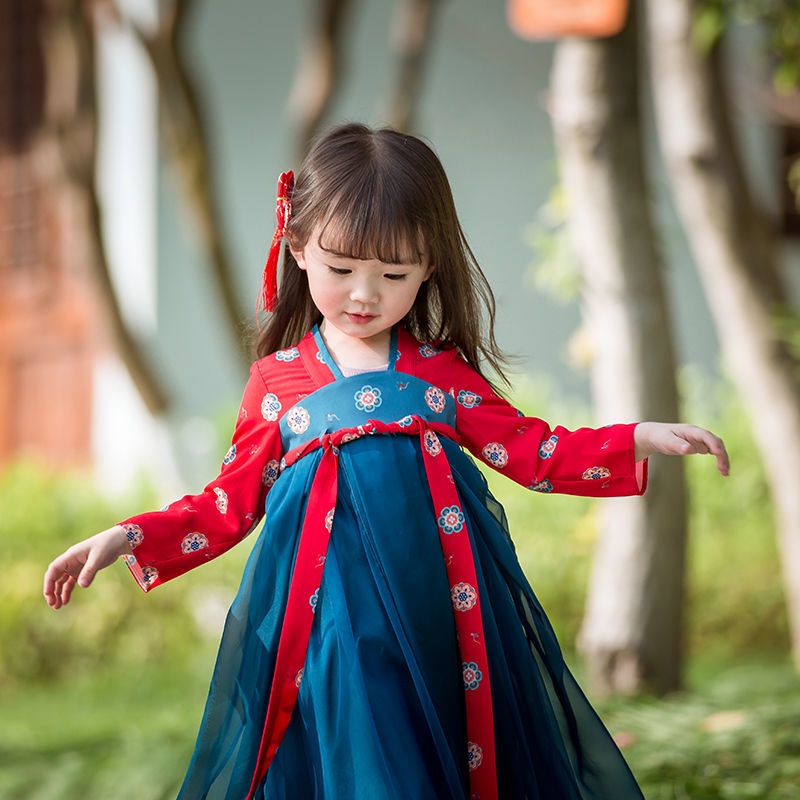 พร้อมส่ง ชุดเดรสกระโปรง แขนยาว ผ้าตาข่าย หลายชั้น สไตล์จีน ฮั่นฝู สีฟ้า และสีแดง สําหรับเด็กผู้หญิง 80-150 หลา