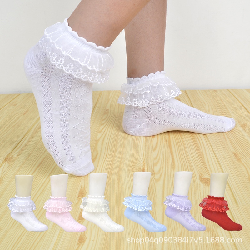 พร้อมส่ง ถุงเท้าลูกไม้ ผ้าตาข่าย แบบบาง สไตล์เจ้าหญิง แฟชั่นฤดูใบไม้ผลิ และฤดูใบไม้ร่วง สําหรับเด็กผู้หญิง อายุ 1-15 ปี