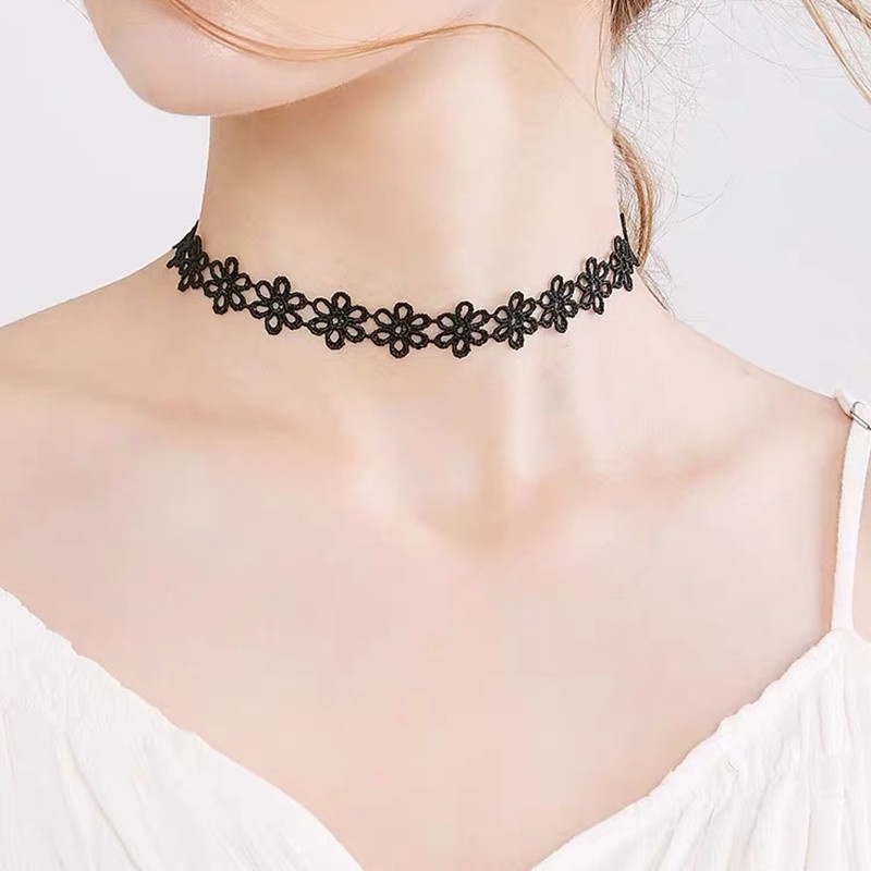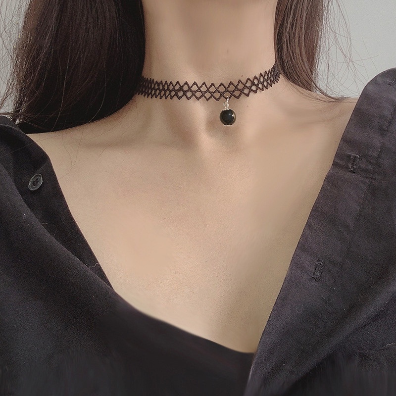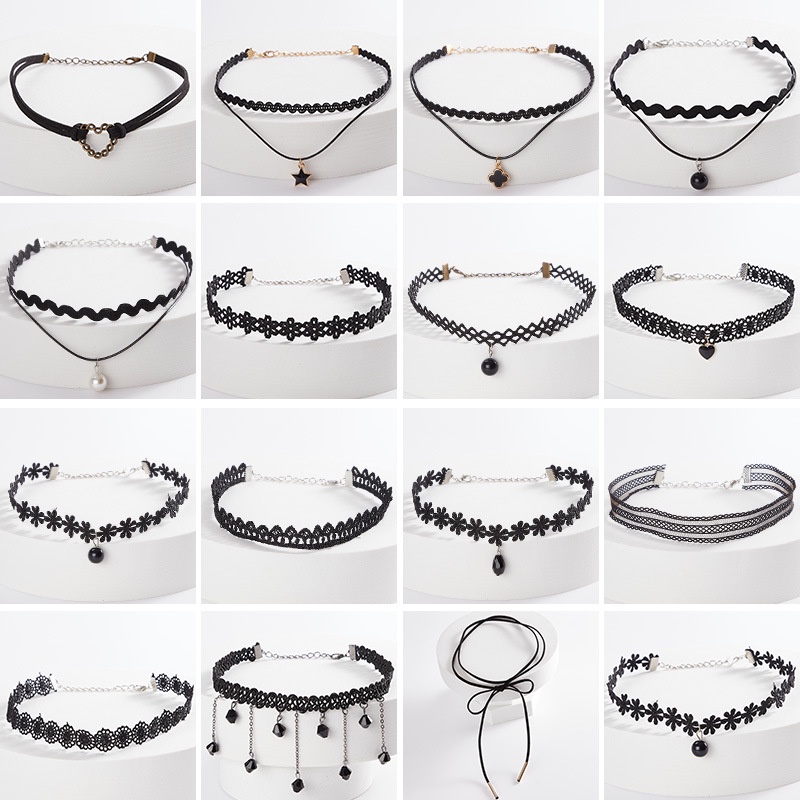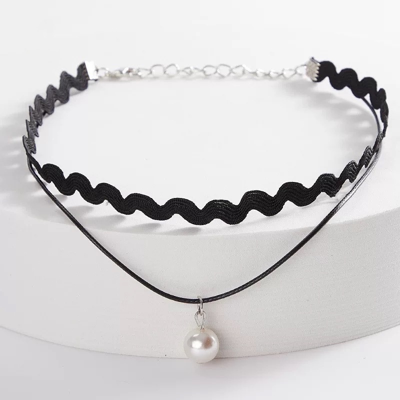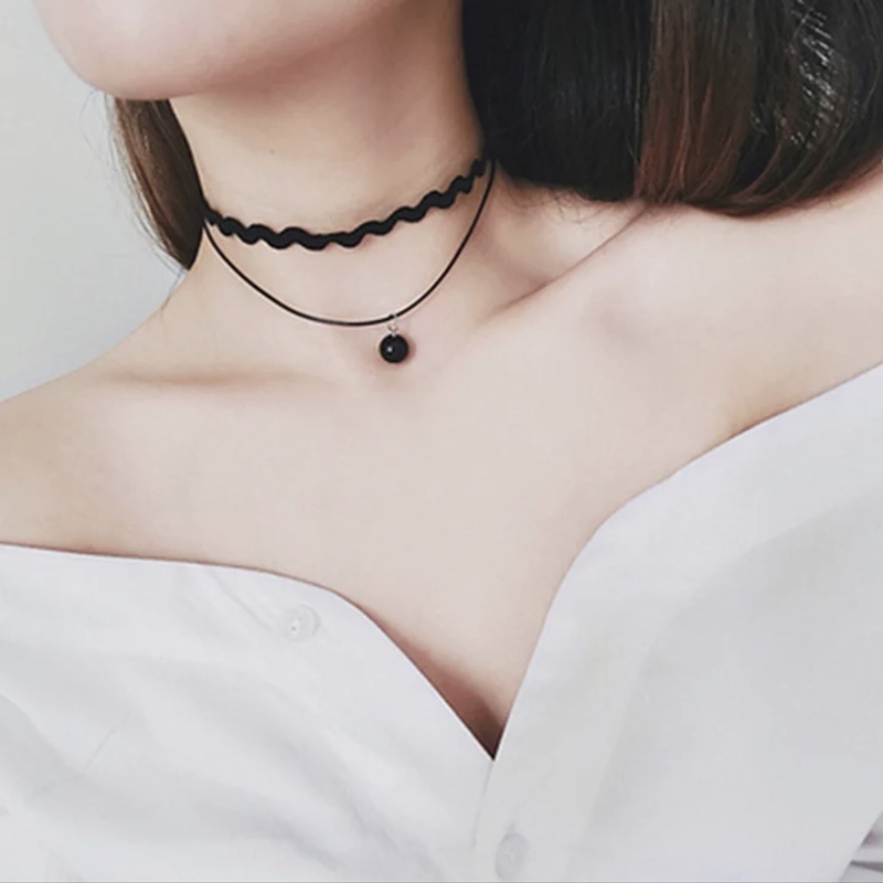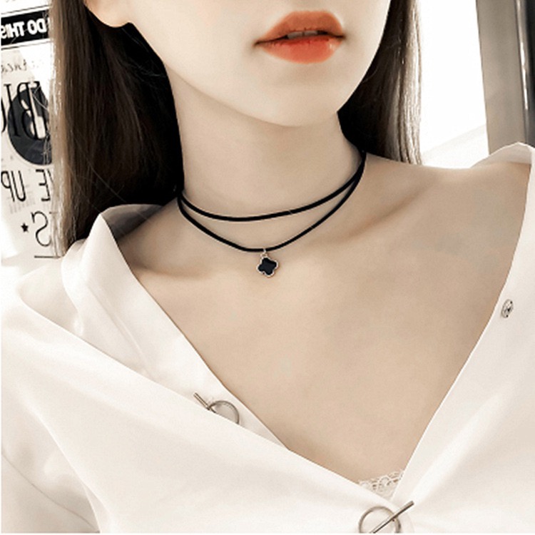 โช้กเกอร์สีดํา ผู้หญิง สองชั้น สร้อยคอ แฟชั่นเกาหลี กระดูกไหปลาร้า โซ่