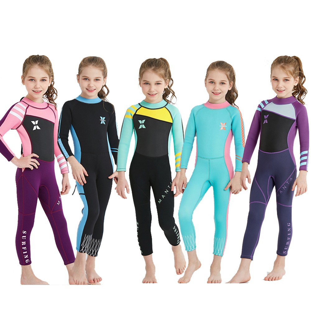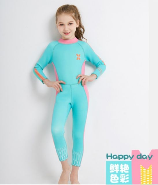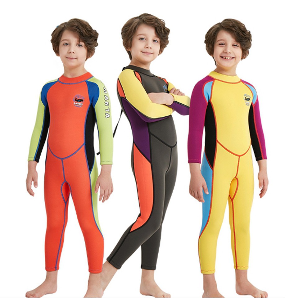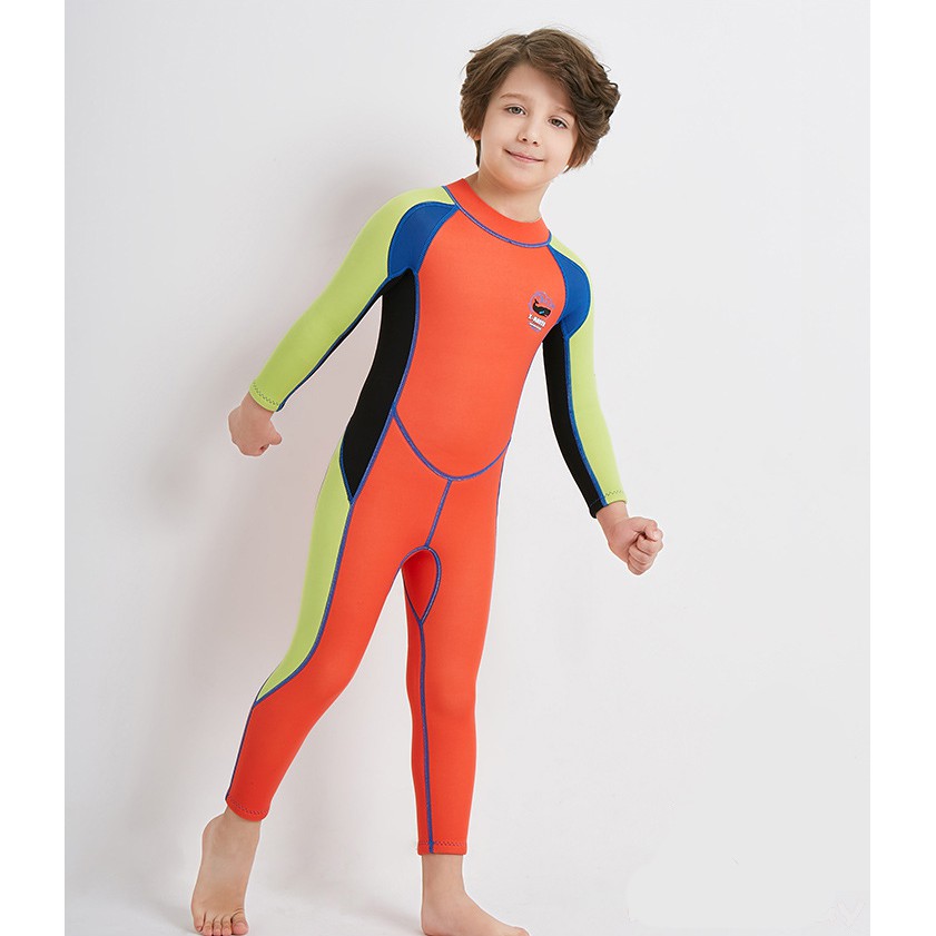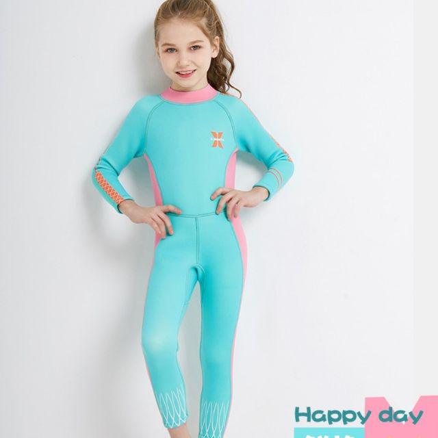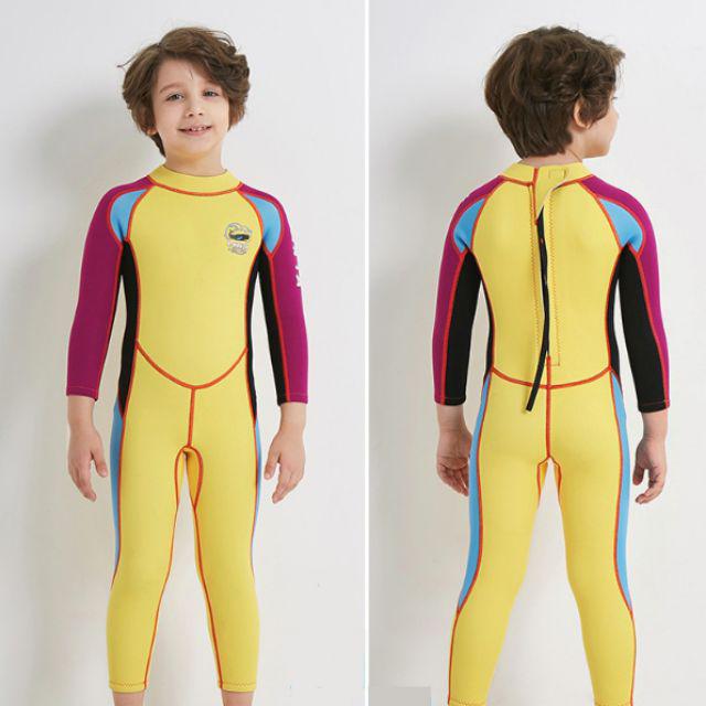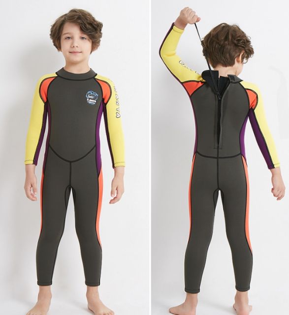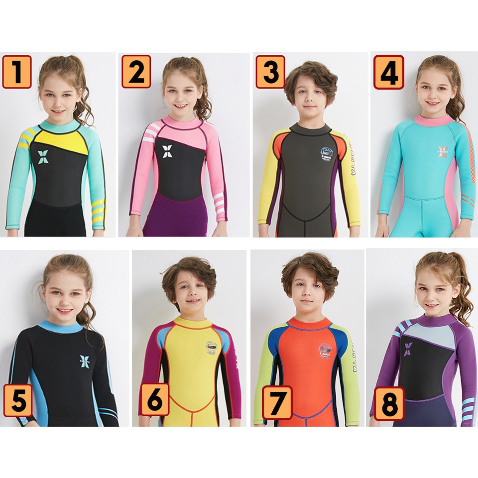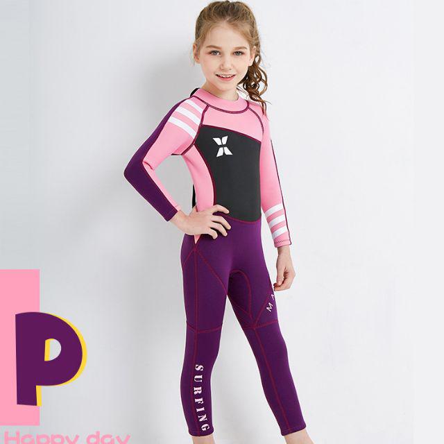 (แถมหมวก) ชุดว่ายน้ำเด็ก ควบคุมอุณหภูมิ ใส่ง่าย แขนยาว กันหนาว Swimsuit แถมหมวกพร้อมส่งในไทย
