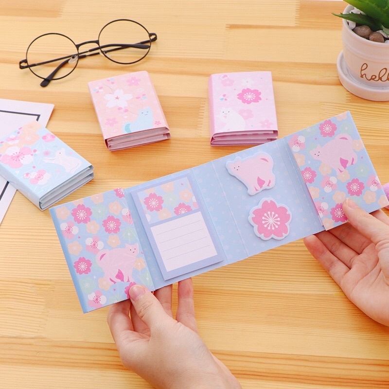 [เก็บโค้ดส่งฟรีหน้าร้าน] กระดาษโน้ต โพสท์อิท Sticky note พับได้เป็นเล่ม ลายการ์ตูน สีพาสเทล