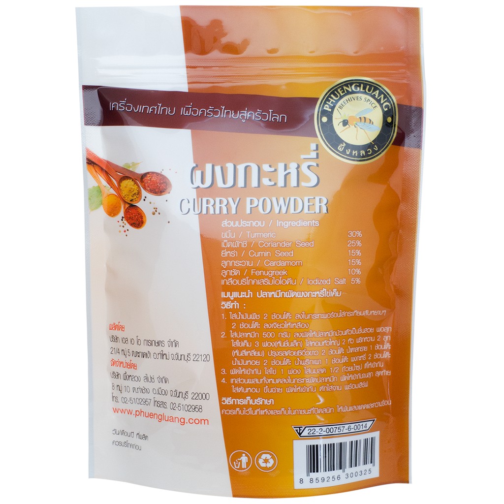 ผงกะหรี่ 500 กรัม บรรจุถุงซิปล็อค ตรา ผึ้งหลวง - Curry powder 500 g.