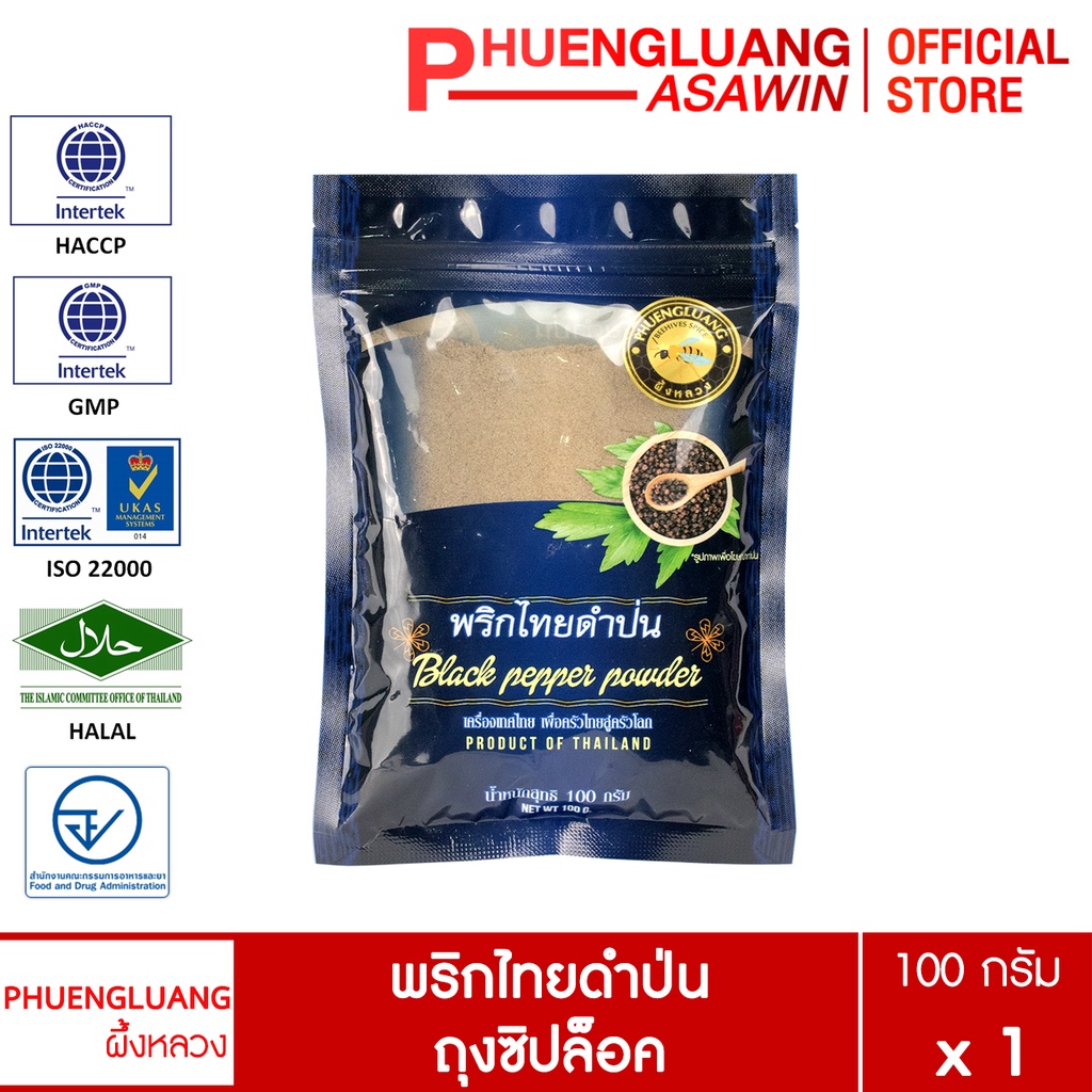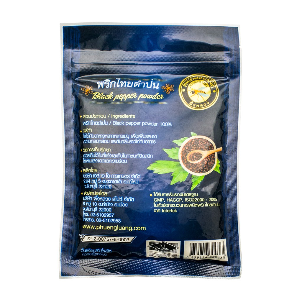 พริกไทยดำป่น 100 กรัม บรรจุถุงซิปล็อค ตรา ผึ้งหลวง - Black pepper powder 100 g.