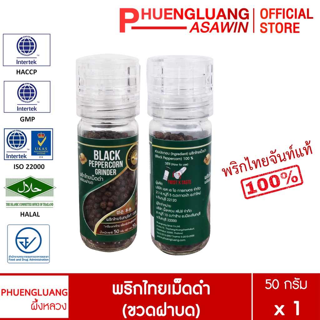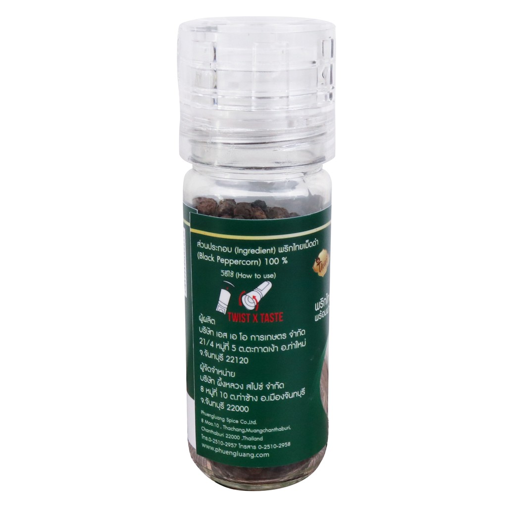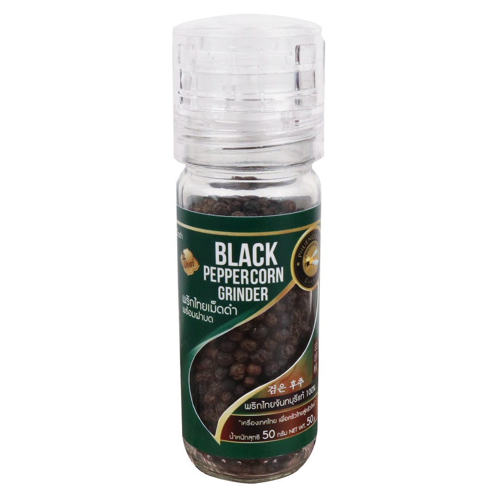 พริกไทยเม็ดดำ (ขวดฝาบด) 50 กรัม ตรา ผึ้งหลวง - Black pepper corn with grinder cap 50 g.