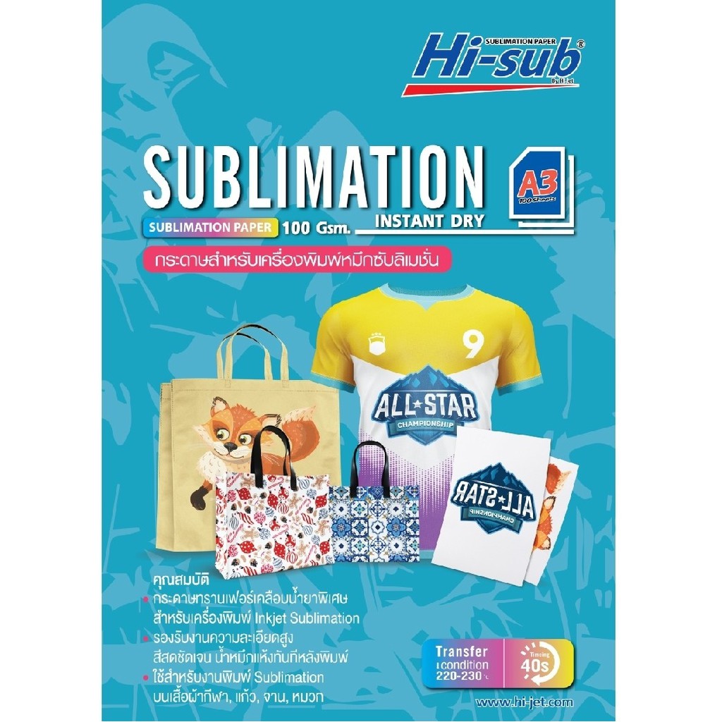 Hi-jet กระดาษรีดเสื้อ ซับลิเมชั่น Sublimation Transfer Paper 100 แกรม A3 100 แผ่น