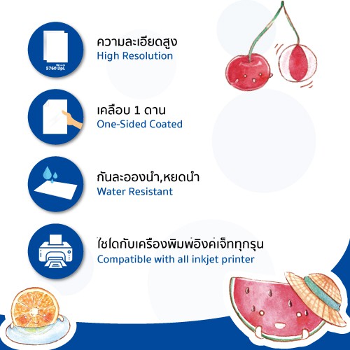 Hi-jet สติกเกอร์ผิวมัน Inkjet Fruit Series Glossy Sticker 120 แกรม A4 100 แผ่น