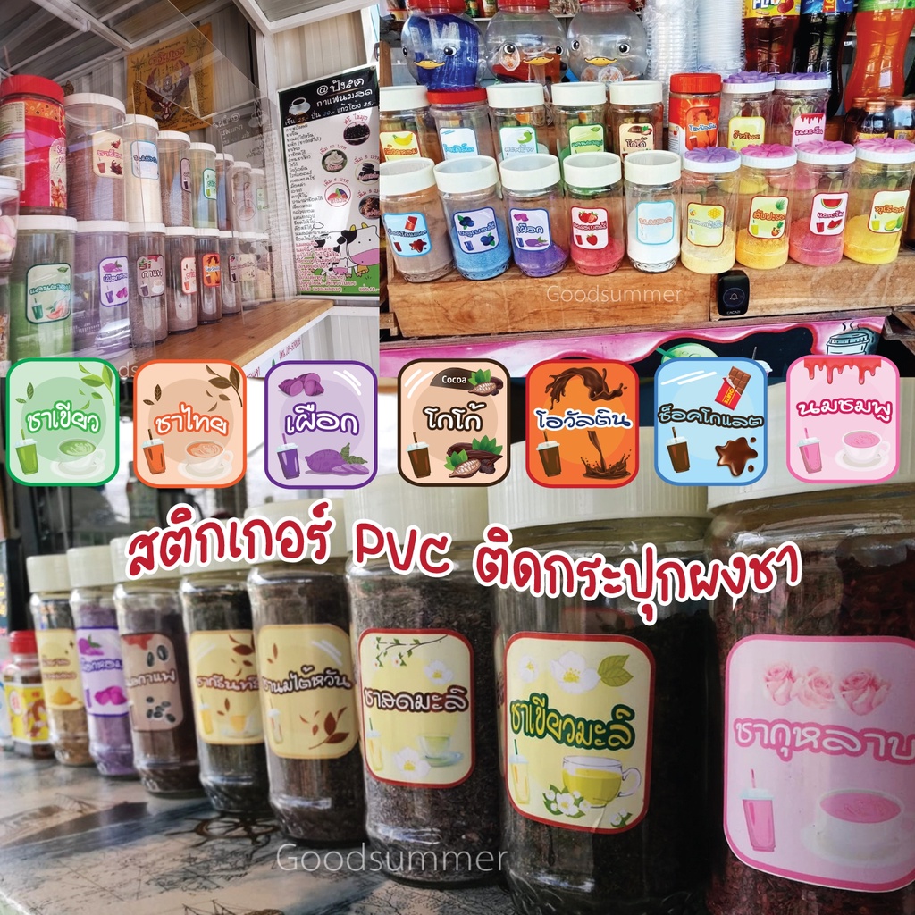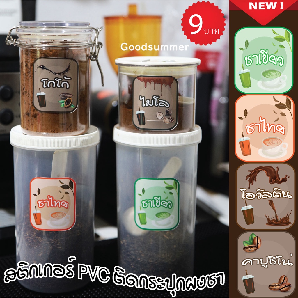สติกเกอร์PPติดกระปุกผงชา ผงกาแฟ สุดน่ารัก กันน้ำ มันเงา สุดน่ารัก