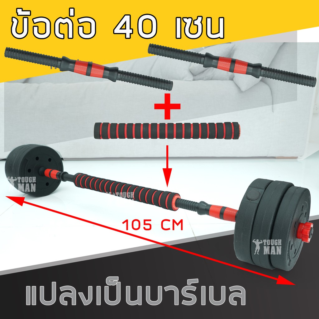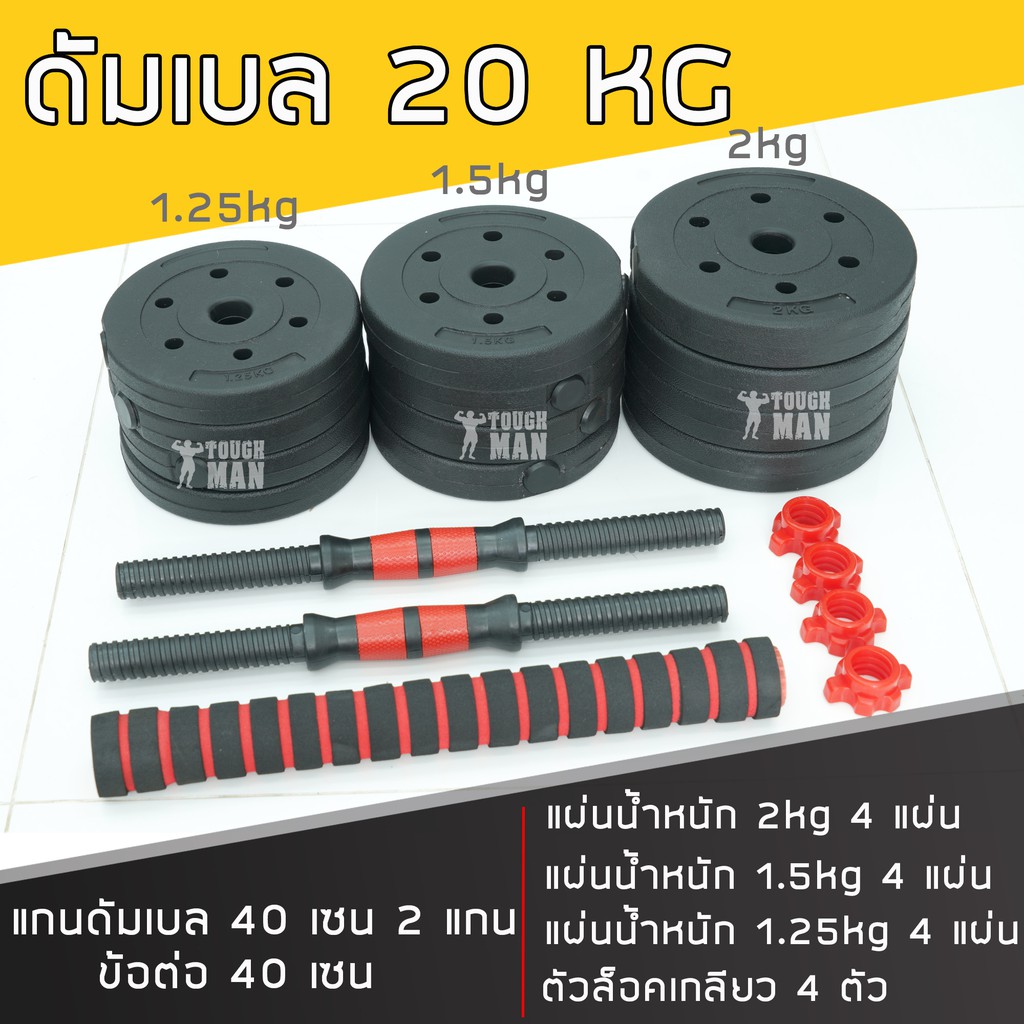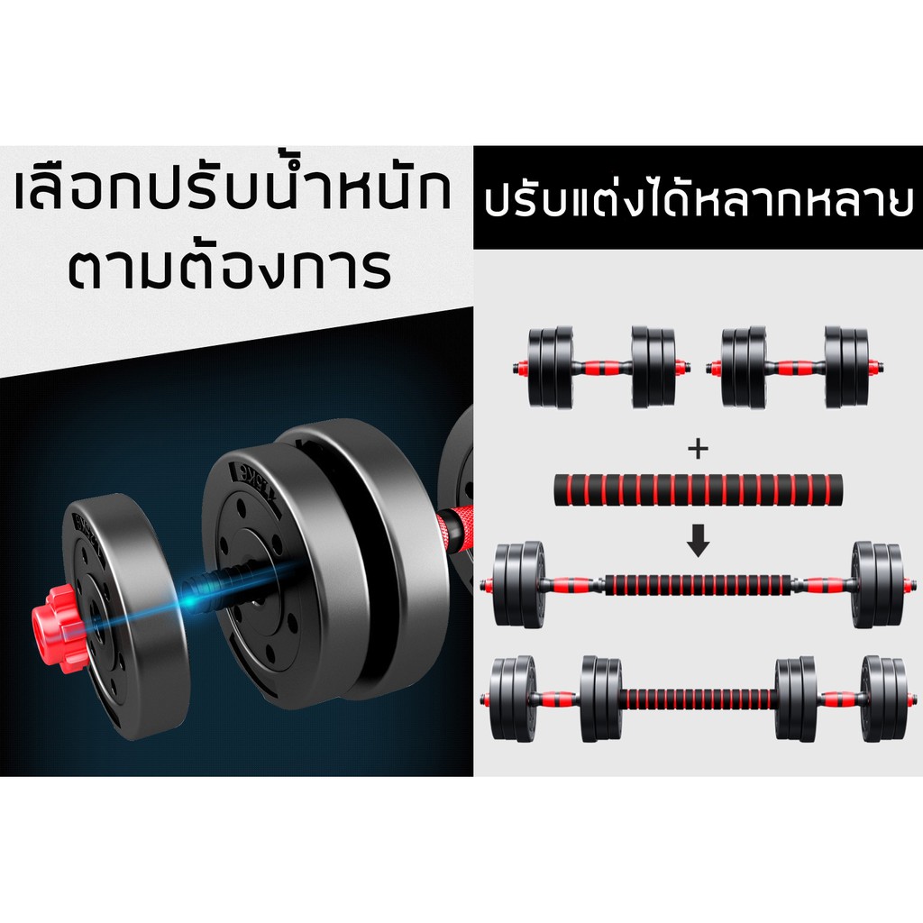[มีโค้ดลด] ดัมเบล พลาสติก-กลม ปรับน้ำหนัก 20 กิโลกรัม ข้อต่อดัมเบล 40 เซน ฟรี!! โปสเตอร์ โปรแกรมฝึก