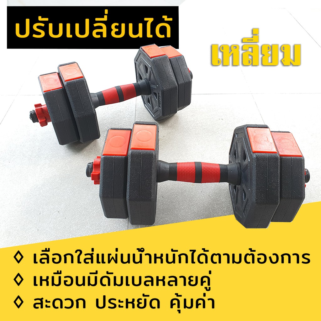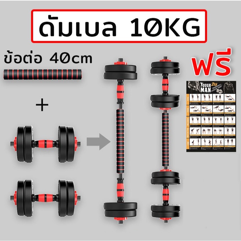 [มีโค้ดลด] ดัมเบล พลาสติก ปรับน้ำหนัก 10 กิโลกรัม ฟรี!! ข้อต่อดัมเบล 40 เซน โปสเตอร์