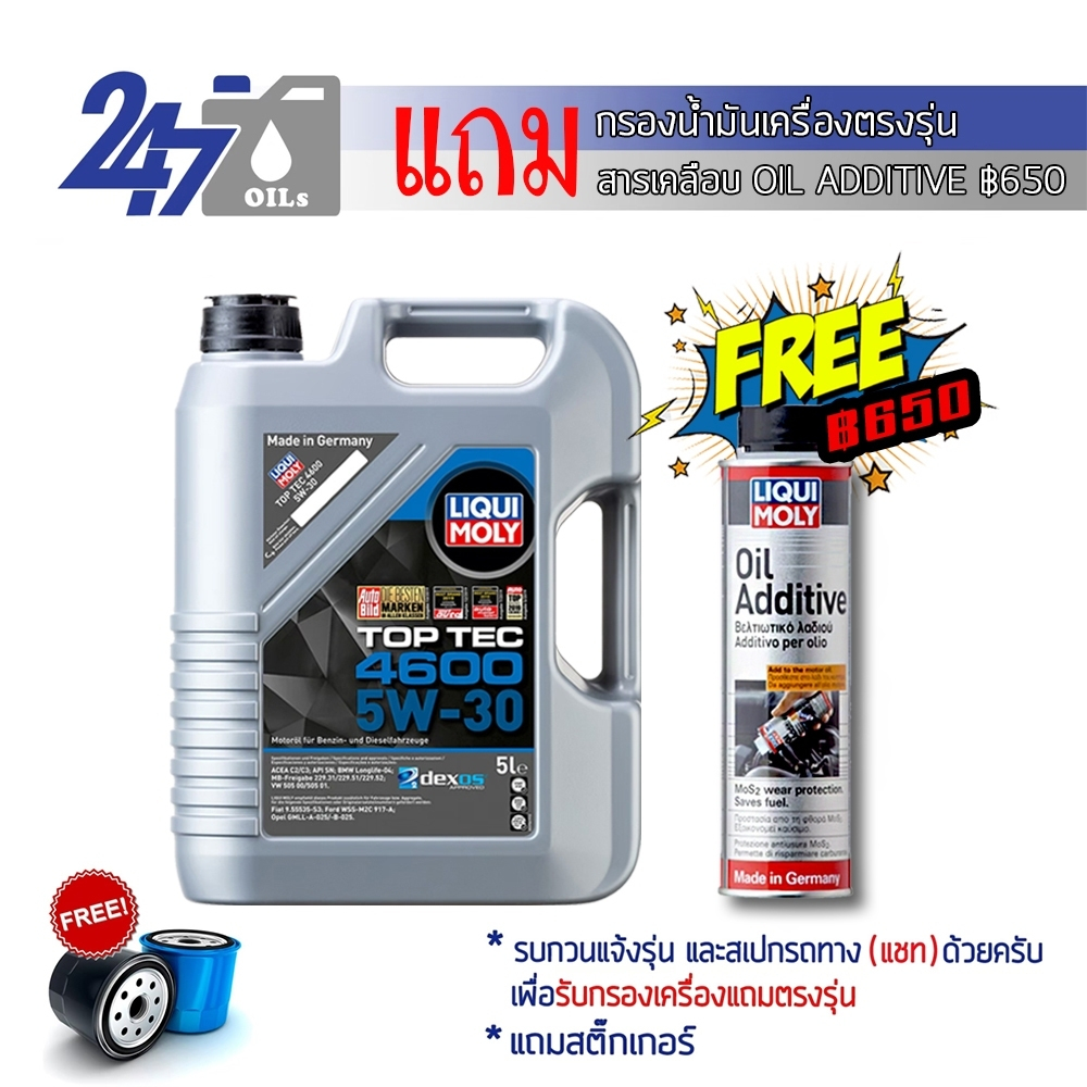 LIQUI MOLY น้ำมันเครื่องสังเคราะห์แท้ TOP TEC 4600 5W-30 5W30 ขนาด 4, 5, 6, 7, 8, และ 9 ลิตร