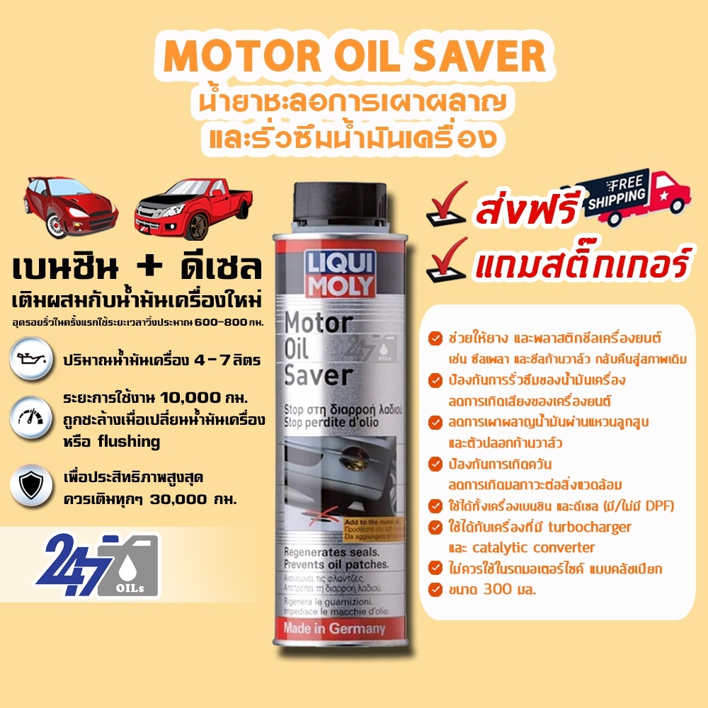 LIQUI MOLY MOTOR OIL SAVER น้ำยาชะลอการรั่วซึมน้ำมันเครื่อง ฟื้นฟูสภาพซีลยาง MOTOR OIL SAVER