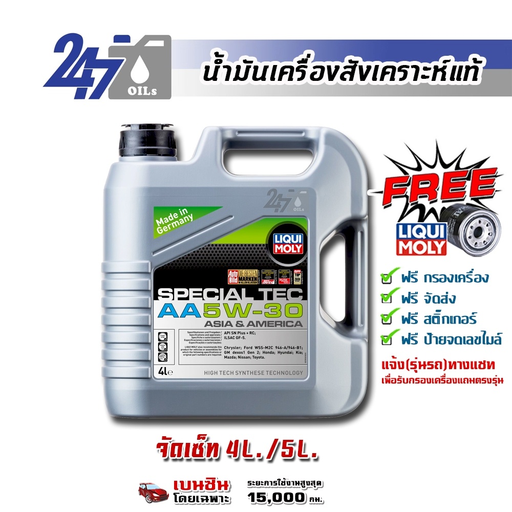 LIQUI MOLY น้ำมันเครื่องสังเคราะห์แท้เครื่องยนต์เบนซิน SPECIAL TEC AA 5W-30 5W30 4L และ 5L