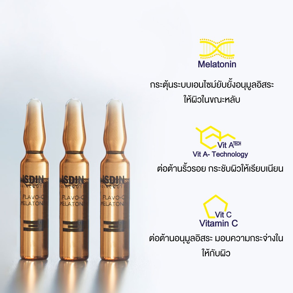 ISDIN ISDINCEUTICS FLAVO-C MELATONIN ซีรั่มฟื้นฟูผิวสูตรกลางคืน ชะลอวัย ผิวใสอ่อนเยาว์ในทุกๆเช้าเหมือนนอนอิ่ม 8 ชม.