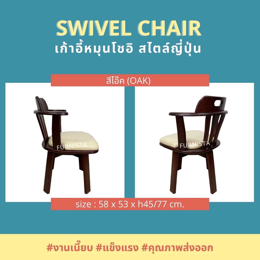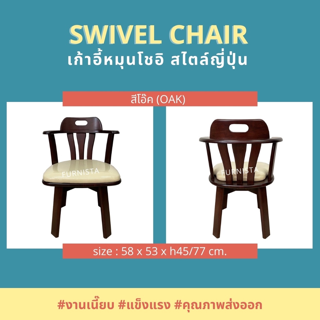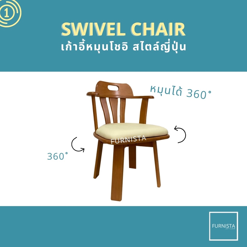 [1.1] โค้ดลด 15% เก้าอี้หมุนโชอิ เก้าอี้ทานอาหารหมุนได้ สไตล์ญี่ปุ่น ไม้ยางพารา