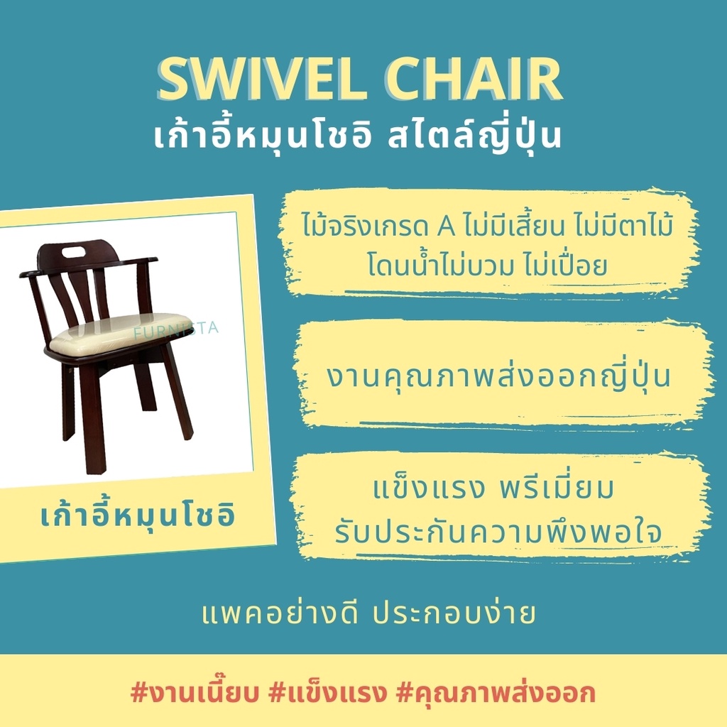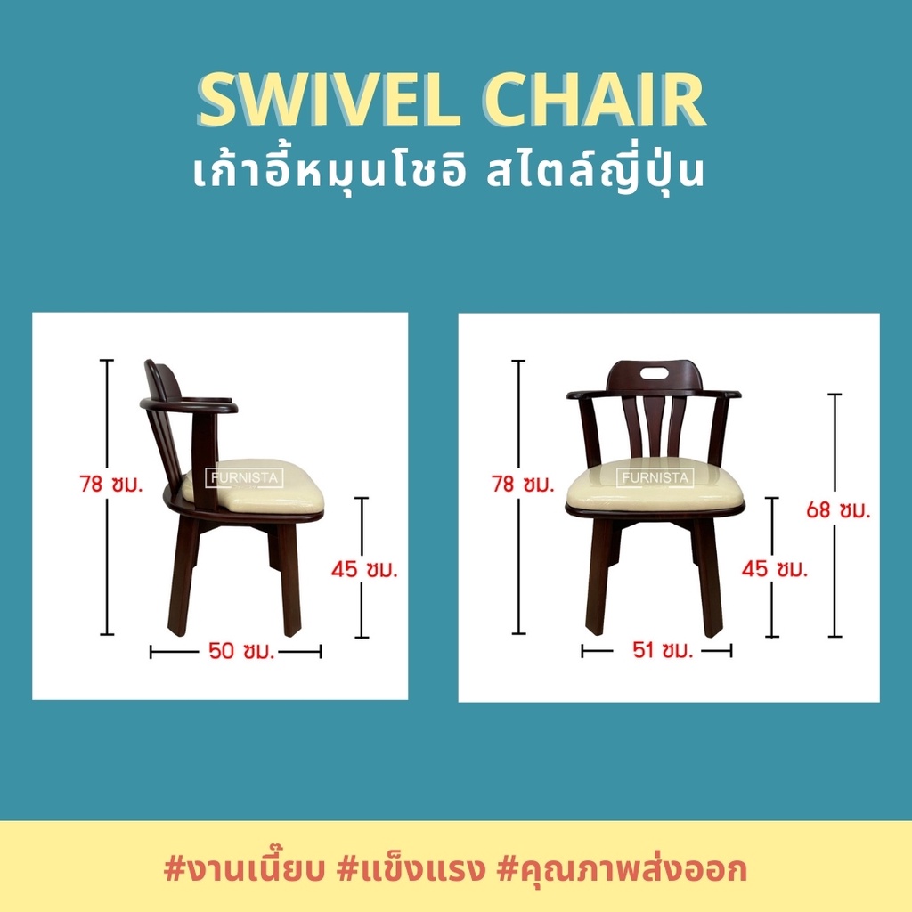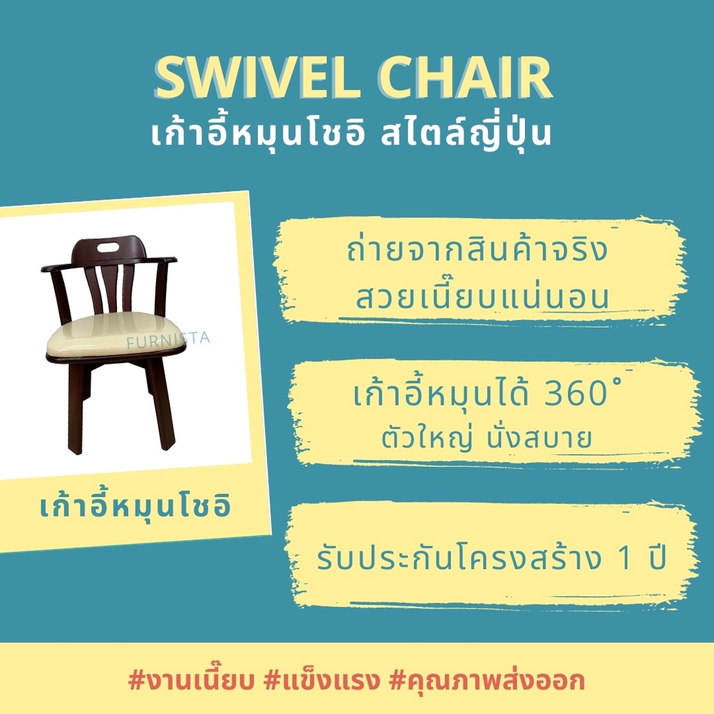[1.1] โค้ดลด 15% เก้าอี้หมุนโชอิ เก้าอี้ทานอาหารหมุนได้ สไตล์ญี่ปุ่น ไม้ยางพารา