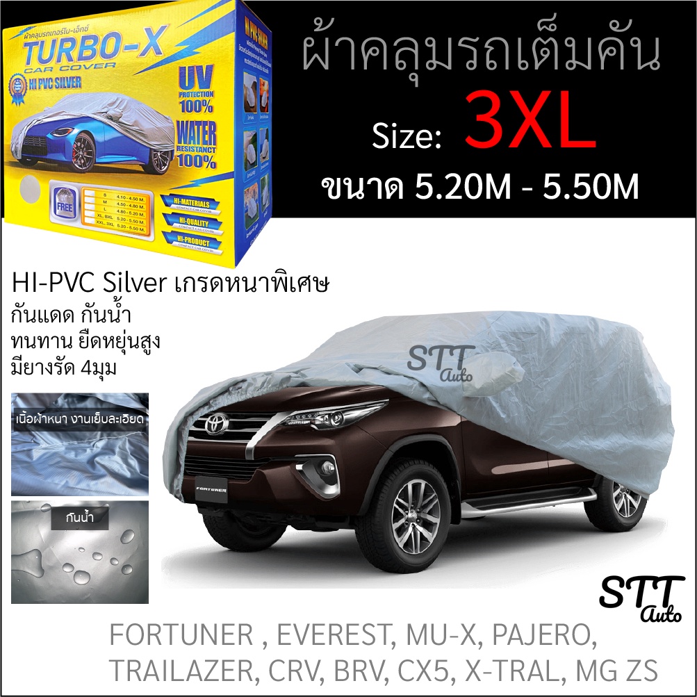 ผ้าคลุมรถยนต์ TURBO - X หนาพิเศษ Hi-PVC ไซส์ 3XL ขนาด 5.20M - 5.30M ผ้าคลุมรถ กันแดด กันฝุ่น ทนทาน
