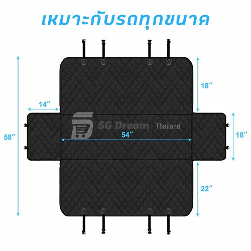 ผ้าคลุมเบาะ กันเปื้อน ในรถสำหรับสัตว์เลี้ยง คุณภาพสูง กันน้ำ 100% Premium Pet Car Seat Cover รุ่น 3 ที่นั่ง มีซิบ