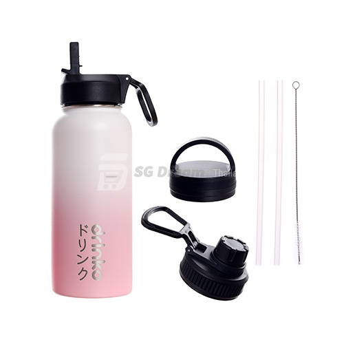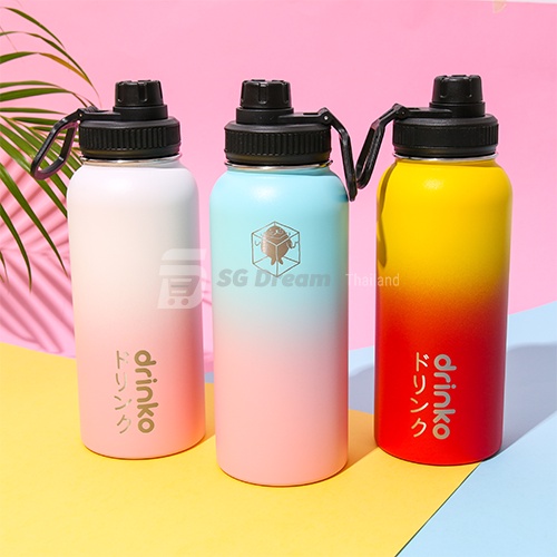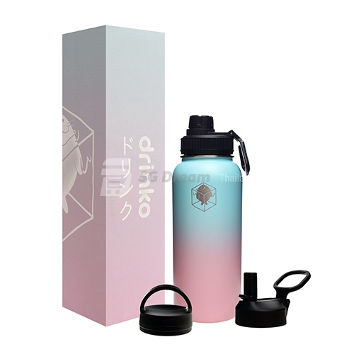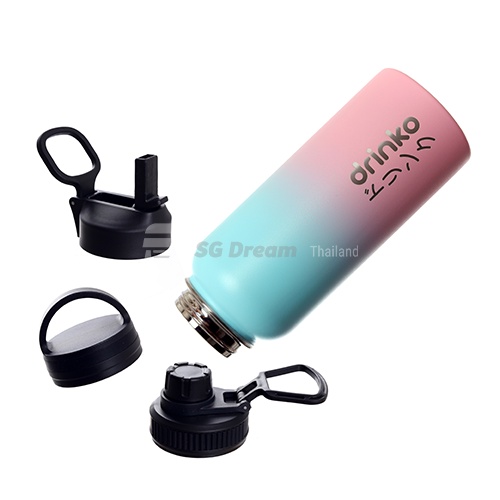 drinko กระติกน้ำ กระติกเก็บความเย็น กระติกสแตนเลสเก็บความเย็น พร้อมฝา 3 ฝา 2 หลอด และ 1 แปรงล้างหลอด Premium Thermal Mug