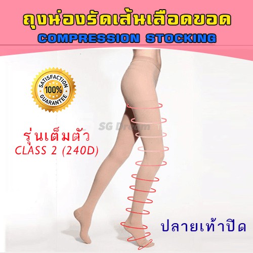 FCT-S ถุงน่องป้องกันเส้นเลือดขอด ถุงน่องรัดขา Class 2 (23-32 mmHg) รุ่นเต็มตัว ปลายเท้าปิด สีเนื้อ