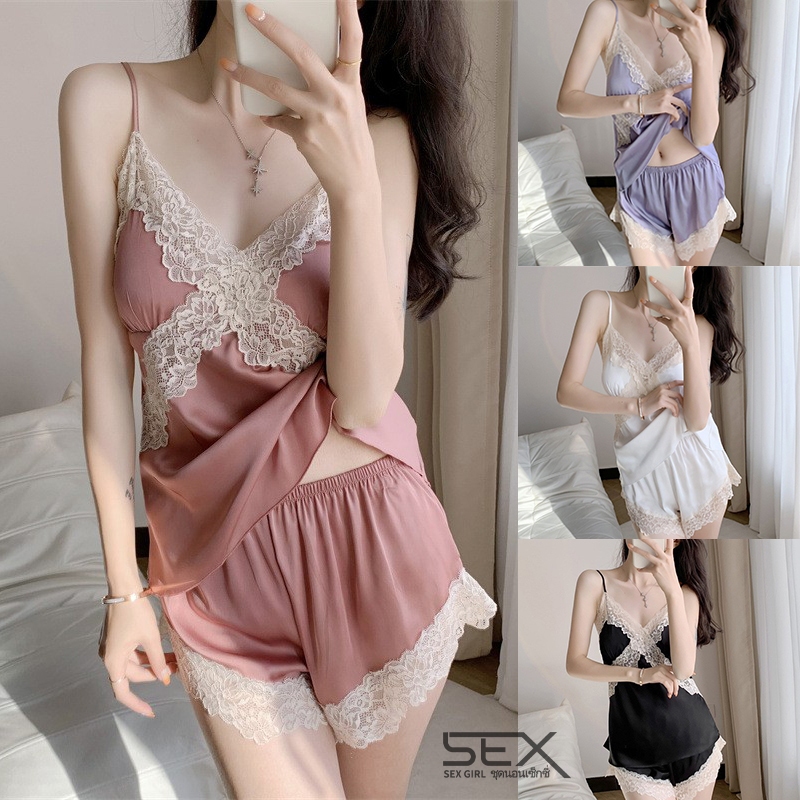 ชุดนอนลูกไม้เซ็กซี่ ชุดชุดนอน ด้วยการแต่งลูกไม้ สะดวกสบายและระบายอากาศได้ดี คุณภาพสูง(H9120)