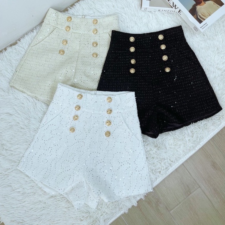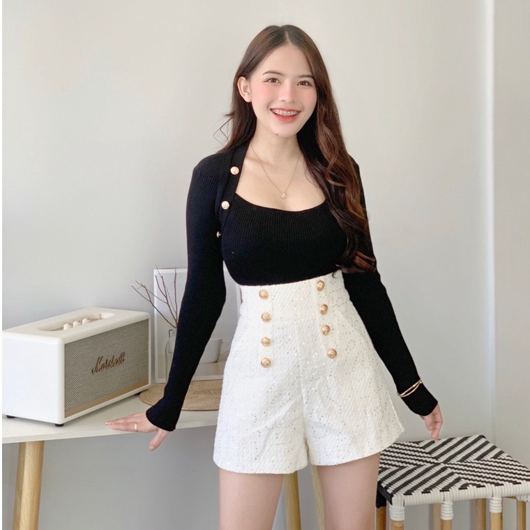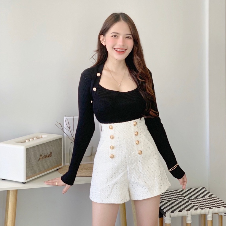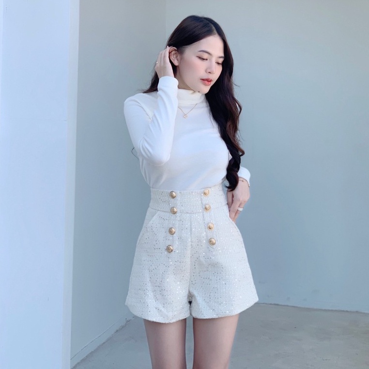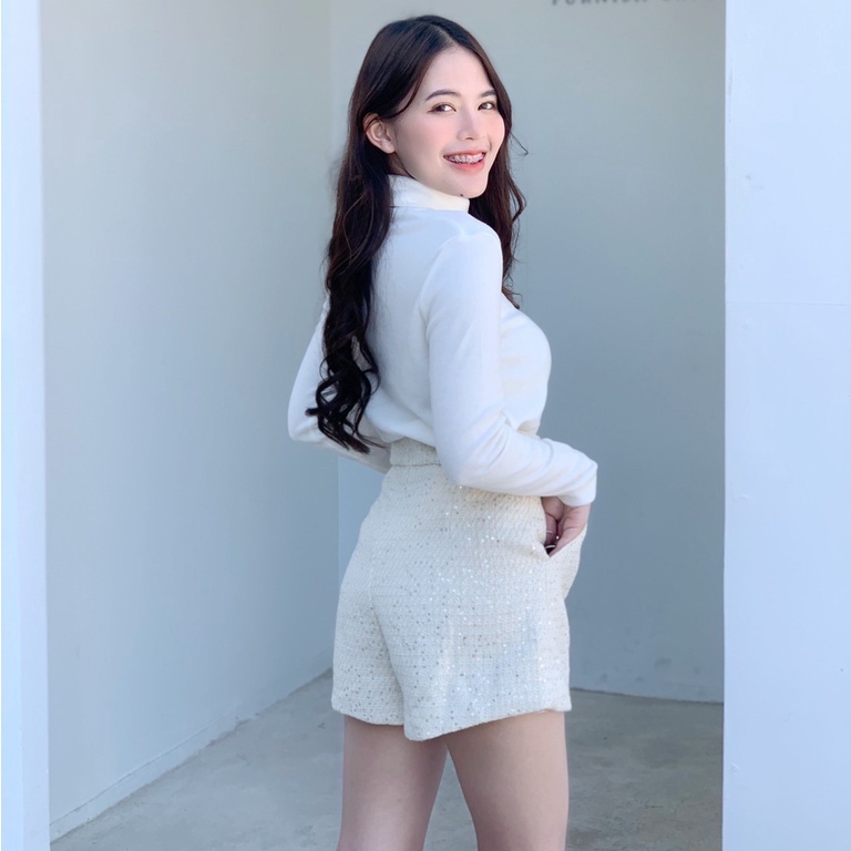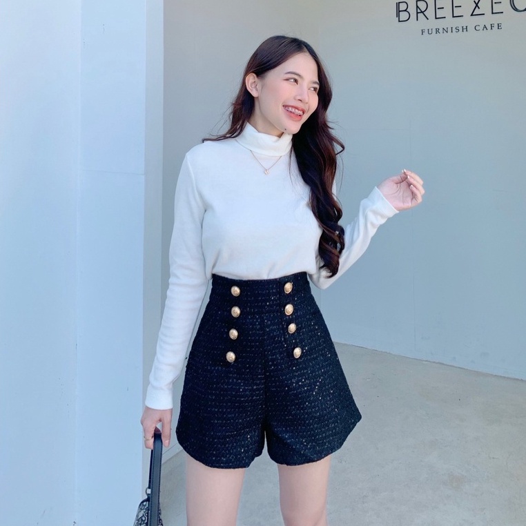 JARINYA 💛 กางเกงผ้าทวิตขาสั้น เอวสูง มีซับใน เนื้อผ้าเป็นผ้าทวิตค่อนข้างหนา ทอละเอียด (C10)