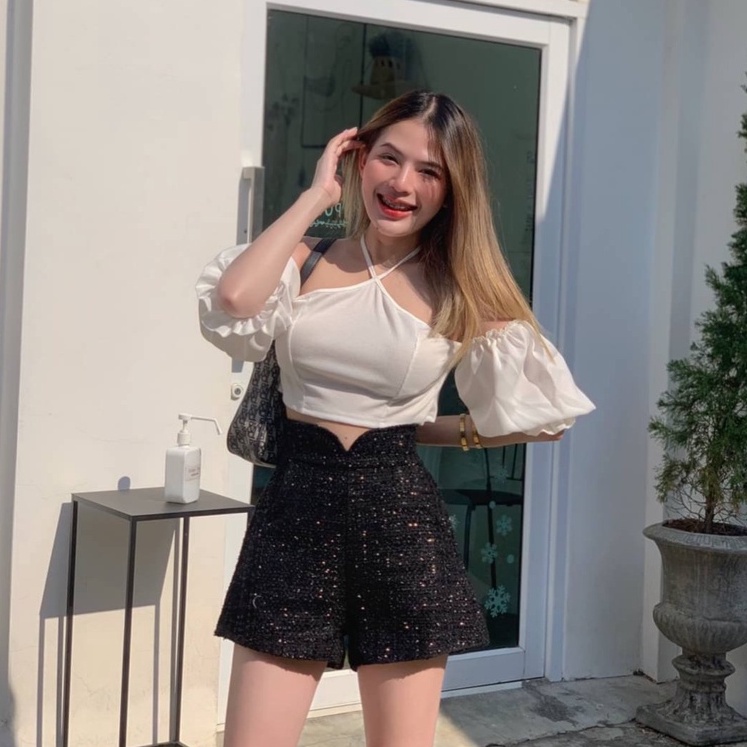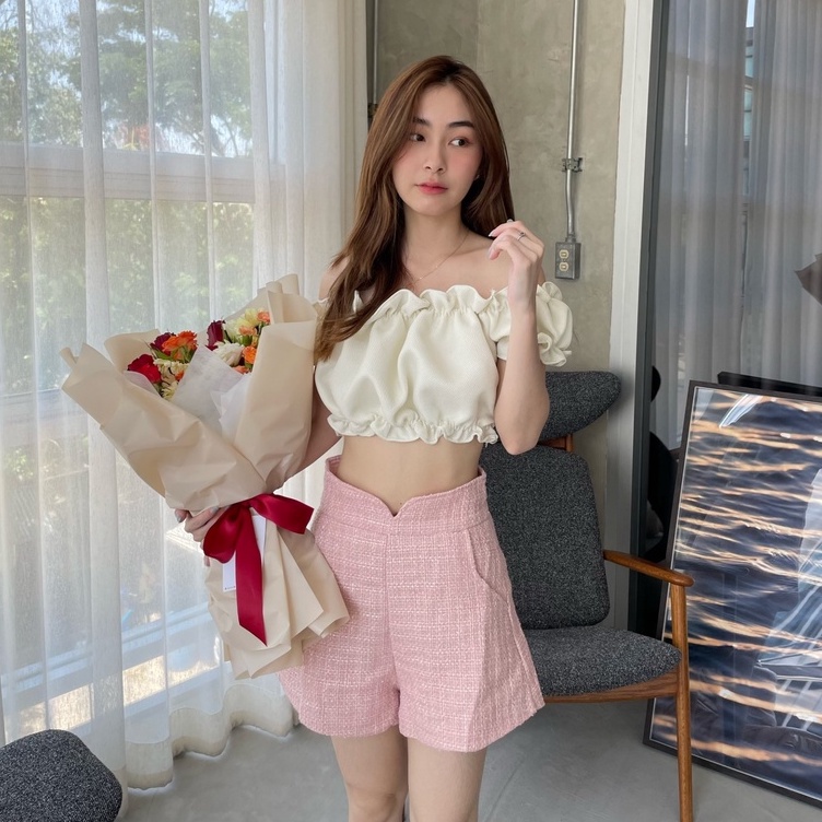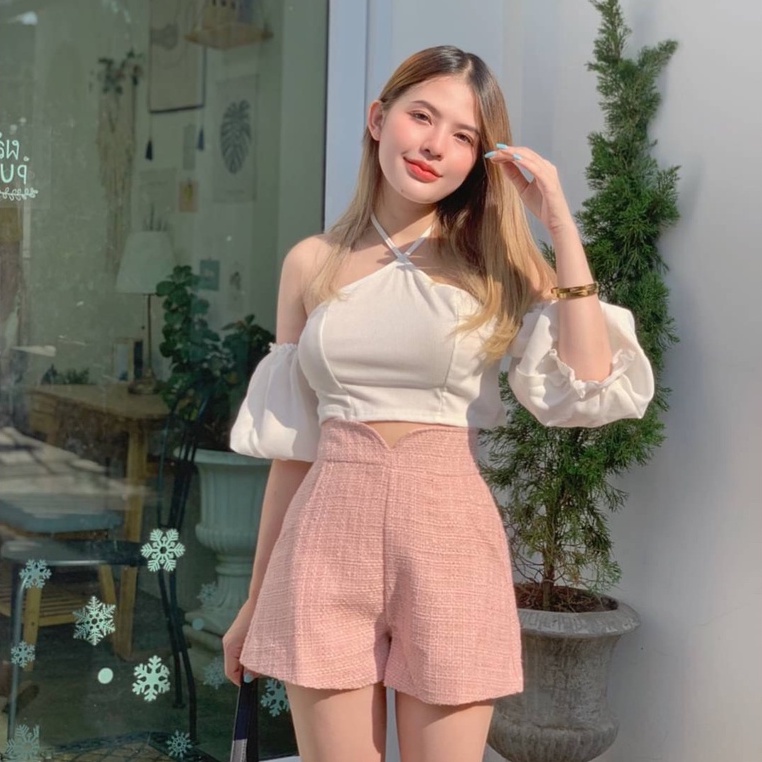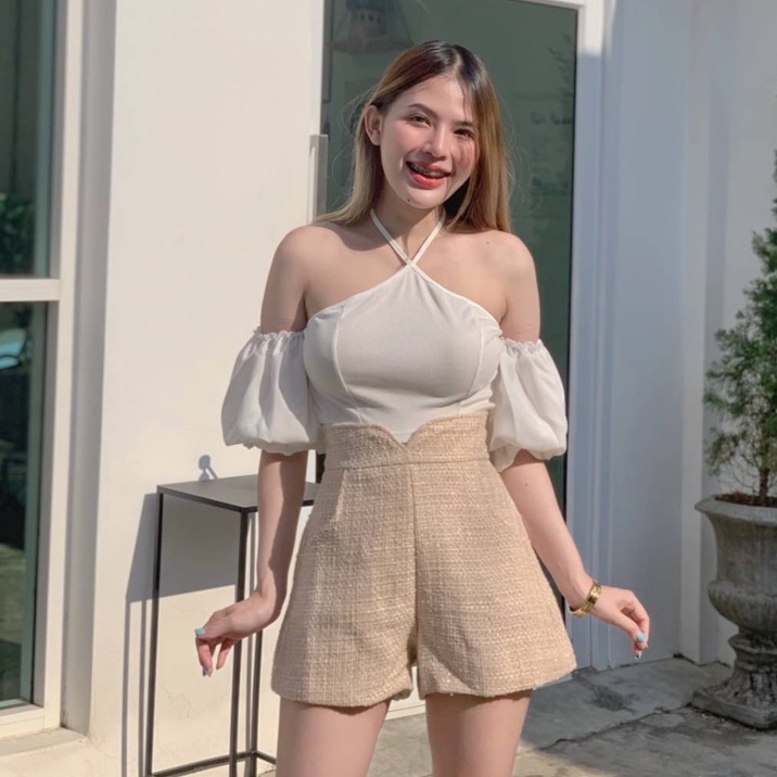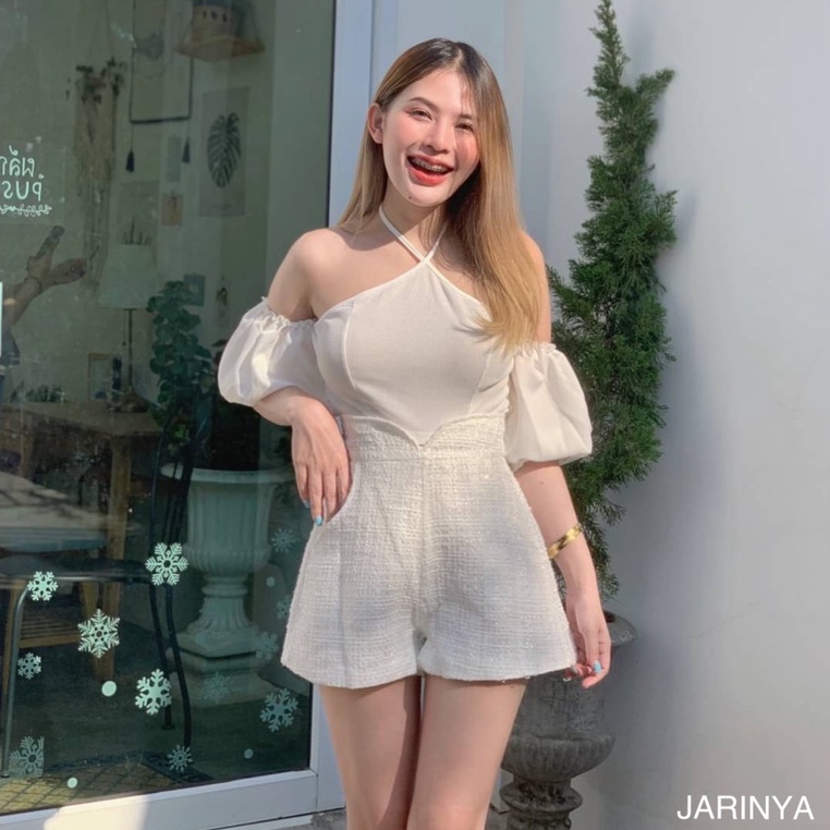 JARINYA 💛กางเกงขาสั้นผ้าทวิตชาแนล เนื้อผ้าเกรดพรีเมี่ยม แต่งเอวหยัก มาพร้อมกระเป๋า 2 ข้าง ใช่งานได้จริง สีแมชง่าย ทรงสวย