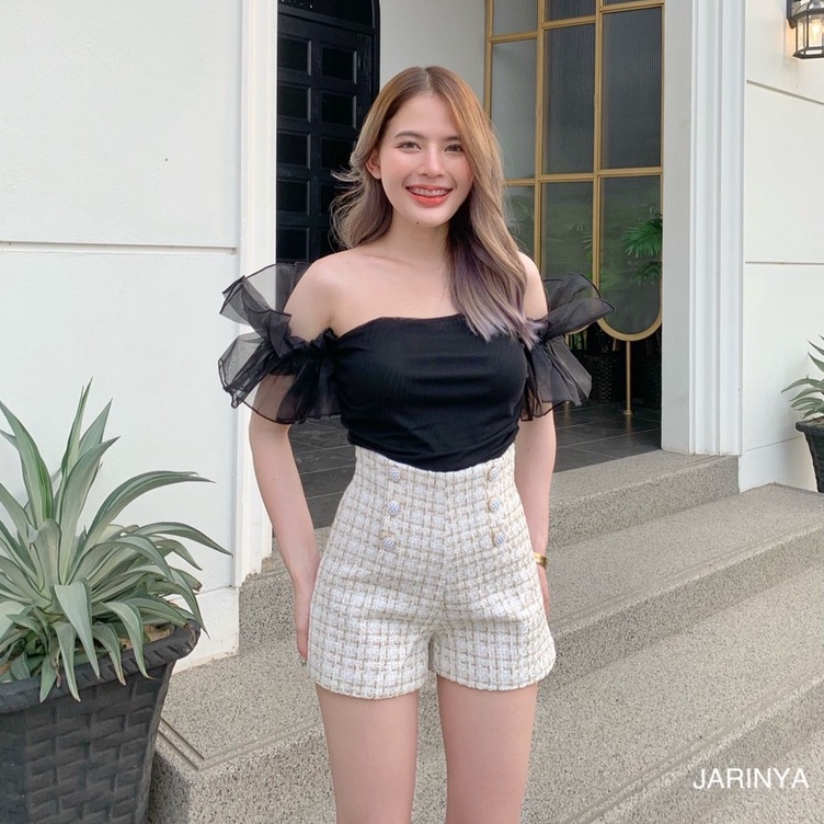 JARINYA (S-2XL) 💛กางเกงผ้าสั้น 🔥ผ้าทวิตชาแนล มีซิปด้านข้าง เรียบหรู มีซับใน ใส่สบาย (C02)