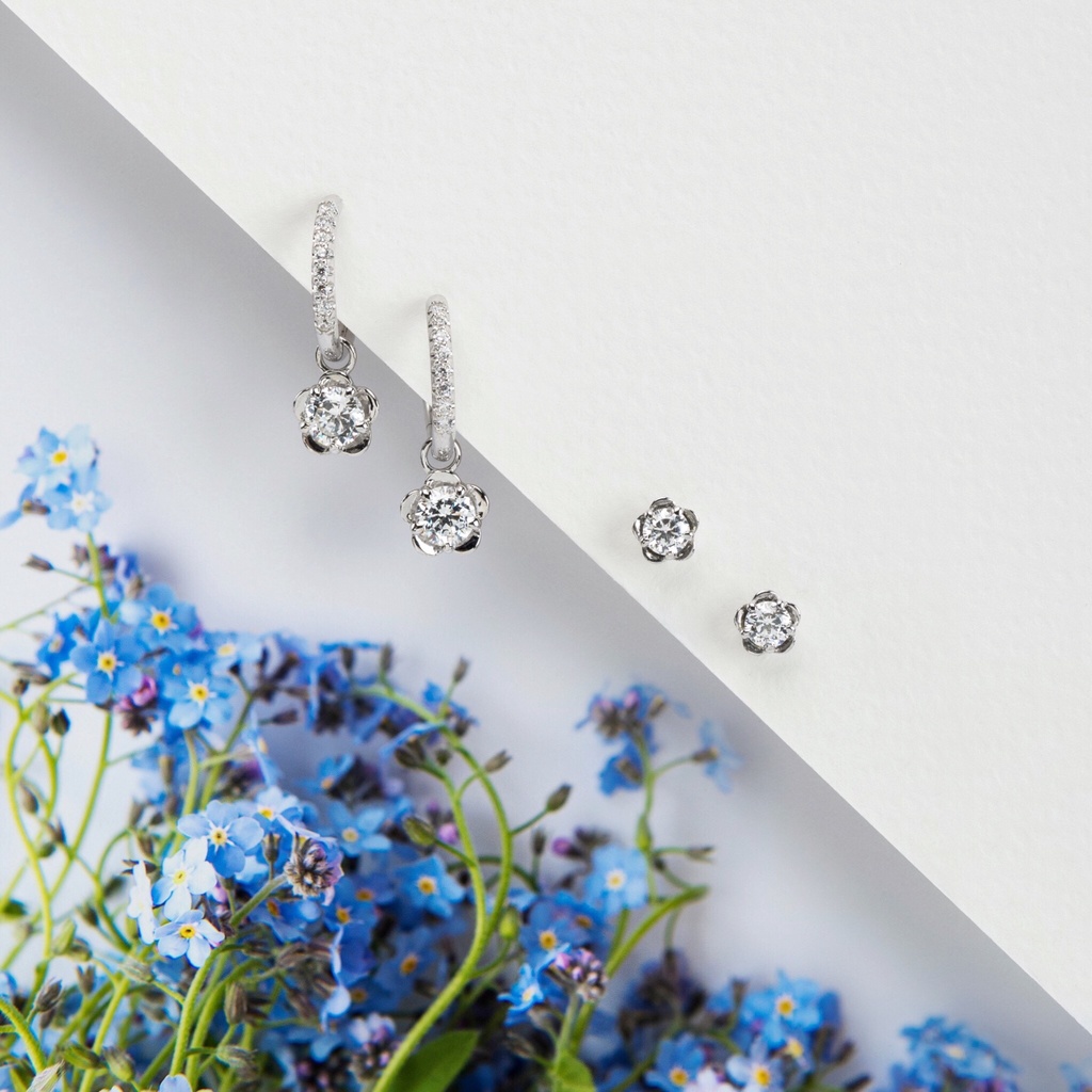 Merii ต่างหูเงินแท้ 925 ชุบโรเดียม ประดับ CZ ขนาด 3.5 มม. รูปดอกฟอร์เก็ตมีน็อต